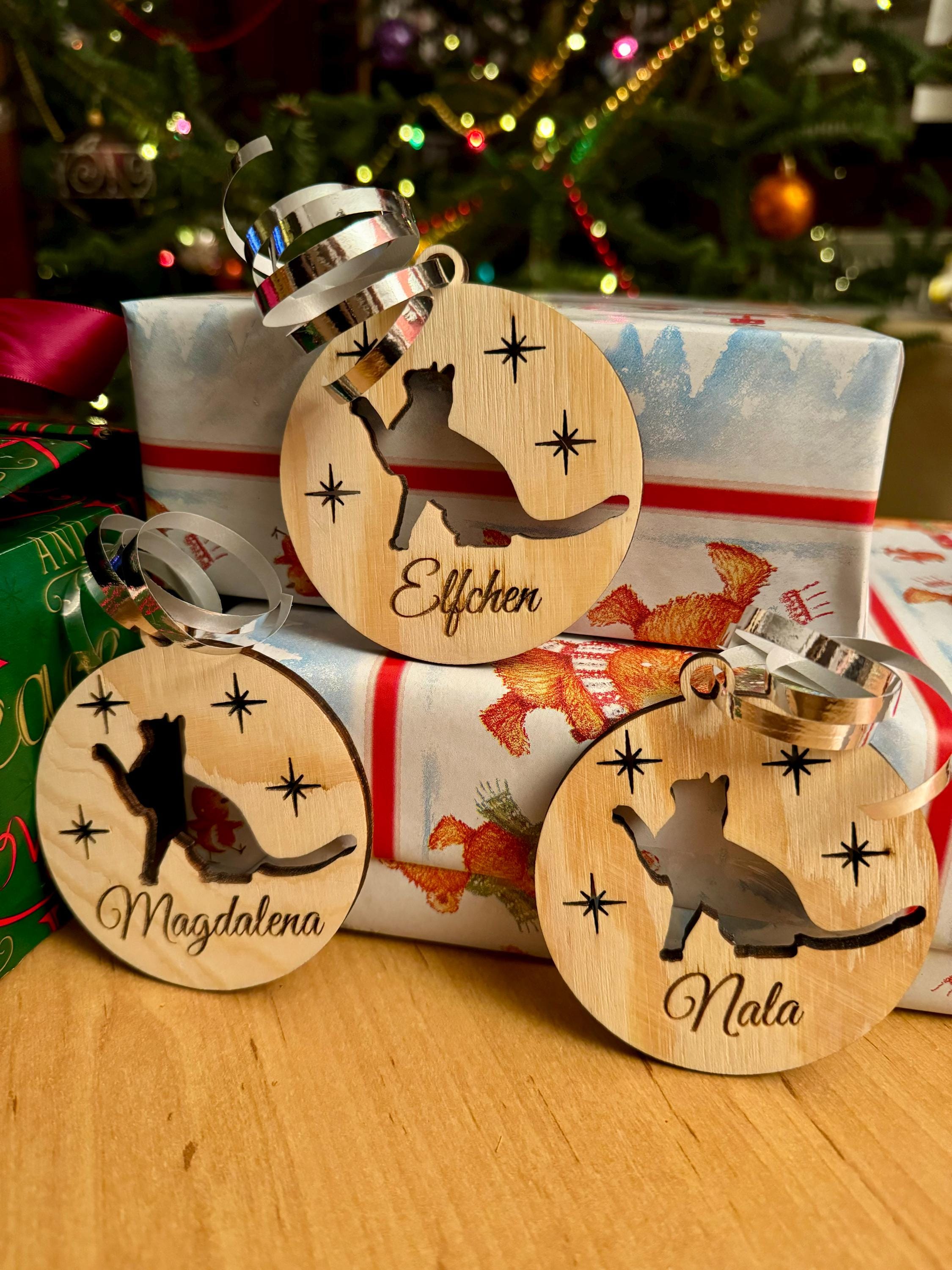 Cette boule de Noël chat “Joyeux MIAOU Noël” est une décoration artisanale en bois entièrement fabriquée en France, dans notre atelier proche de Toulouse. Sa finition lisse, son motif drôle et sa cordelette rouge en font un ornement parfait pour décorer votre arbre, une porte, un mur ou même un rétroviseur de voiture. Chaque pièce est gravée au laser avec soin, mettant en scène un adorable sapin de chats. Mon beau sapin – La banquise (sur mesure) • Bonne nuit mon ange Une pièce unique pour un Noël plein de charme. Offrez un cadeau original et plein d’humour avec cette décoration de Noël “Joyeux MIAOU Noël” ! Boule de Noël en bos humour - cadeau sapn de Noël orgnal humour... Une idée cadeau féline qui fera sourire toute la famille. Cette décoration de Noël en bois ne se limite pas au sapin : elle se transforme facilement en pendentif décoratif pour un mur, une poignée de porte ou un sac. Moins De 10 Euros Boule De Noël En Bois Personnalisée "Chat" - Ernestine Et Cie Chat Decoration Grâce à sa qualité de fabrication française, elle se conserve année après année, apportant à chaque fois la même touche de chaleur et de joie. Cette boule de Noël chat est non personnalisable, mais son message gravé “Joyeux MiAOU Noël” est déjà une déclaration d’amour aux chats qui fera fondre tous les amoureux des félins. Une création française à offrir ou à collectionner, pour un Noël félin et festif ! Cette décoration de Noël chat n’est pas personnalisable, mais son message joyeux et universel plaît à tous les passionnés de félins. Grâce à sa légèreté et à la qualité de fabrication française, elle peut être utilisée d’une année à l’autre sans se déformer. Sa gravure fine et sa finition soignée garantissent une longue durée de vie. Une pièce artisanale pleine de charme et de joie festive. Forme : sapin de chats C’est une idée cadeau originale pour vos amis, collègues, proches ou famille. Apportez une touche de fantaisie féline à votre décoration de Noël avec notre boule de Noël personnalisée “Joyeux MiAOU Noël”, une création artisanale pleine d’humour et de tendresse. Entièrement fabriquée en France, dans notre atelier proche de Toulouse (31), cette décoration en bois représente une pyramide de chats formant un sapin de Noël original. Son design original et sa finition naturelle en font un ornement unique et durable à suspendre à votre arbre de Noël ou à offrir en cadeau à un amoureux des chats. Achat Boule de Noël "Famille formidable" - Maison enneigée - Idée Parfaite pour les amateurs de chats, cette boule de Noël en bois gravée représente une pyramide de chatons formant un sapin festif.