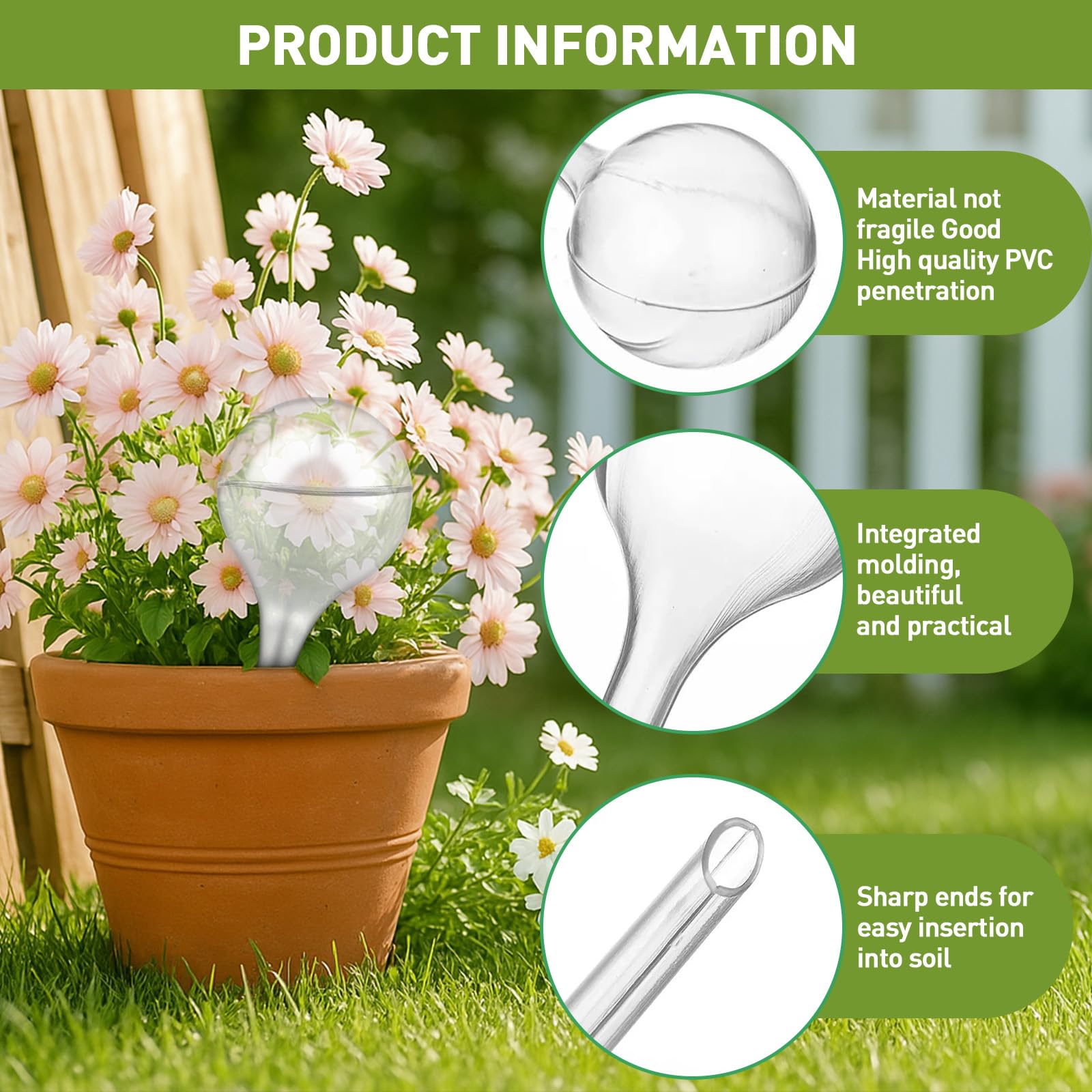 Matériau transparent pour un contrôle facile du niveau d'eau. 10 pièces Boules D'arrosage Automatique Matériel d'Arrosage Automatique... Design de grande capacité : avec un volume de 500 ml, la boule d'arrosage fournit de l'eau à vos plantes pendant plusieurs jours et réduit considérablement la fréquence d'arrosage. Utilisation : Remplir avec de l'eau. Boule Irrigation Céramique Transparente WZYTEU Lot De 8 Boules D'irrigation, Distributeur D'eau Arrosage Autonome Balcon Convient pour : Idéal pour les plantes d'intérieur, les fleurs de balcon, les parterres de jardin et les intérieurs - Parfait pour les vacances ou pour les soins quotidiens. Description du produit Bienvenue dans notre boutique., Cher client, bienvenue ! Capacité : 500 ml par boule., Dimensions : 10 x 17 cm Convient pour différentes plantes : idéal pour une utilisation dans les pots de fleurs, les jardinières de balcon, les jardins ou à l'intérieur – assure automatiquement une humidité uniforme. Matériau transparent : la boule transparente permet de contrôler le niveau d'eau à tout moment – Remplissage exactement quand c'est nécessaire. La boule transparente permet de contrôler le niveau d'eau en un coup d'œil. Caractéristiques du produit : Conception de grande capacité : 500 ml d'eau pendant plusieurs jours. EN STOCK : Boule d arrosage pour pot pas cher. Grand choix, promos permanentes et livraison rapide partout en France. Paiement sécurisé Description du produit : Avec un volume de 500 ml, la boule d'arrosage fournit de l'eau à vos plantes pendant plusieurs jours et réduit considérablement la fréquence d'arrosage. Facile à utiliser : il suffit de le remplir avec de l'eau et de le planter dans la terre, les plantes absorbent exactement la quantité d'eau dont elles ont besoin. Pompe à eau en bouteille, seau de boisson, distrib... – Grandado