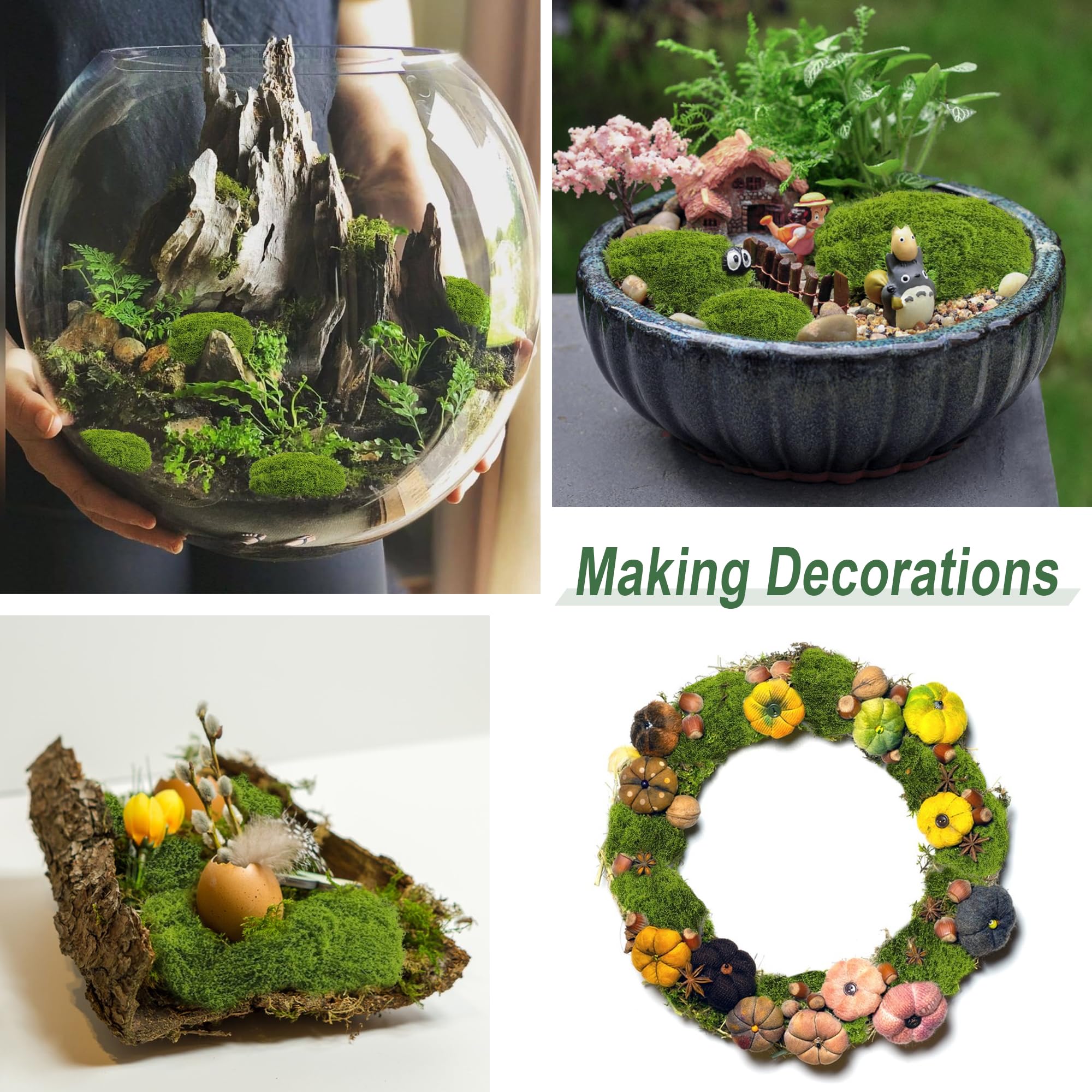 Fausse Mousse Pour Couronne Boules De Mousse Artificielles | Plante Artificielle Déco Mousse Stabilisée Tapis de gazon en mousse artificielle en forme de pierre pour 50g Mousse artfcelle pour décorer, Mousse artfcelle pour... Suffisant pour la décoration ou l'artisanat Peut être trempé dans l'eau et ne changera pas de couleur. Peut également être déchiré en fines bandes pour la décoration locale. 50 grammes suffisent : chaque sachet contient 50 grammesmousse artificielle (50 grammes en vert foncé), qui peuvent être utilisés pour des travaux manuels. Design créatif:mousse artificielle Peut être utilisé pour faire un aquarium, un tableau de mousse, un mur de mousse, une mousse d'aquarium, une couronne de mousse, un panier suspendu, une nappe de mousse, un tapis de mousse, un modelage de mousse et ainsi de suite. Scènes applicables:Que ce soit sur des couronnes, des vases en verre ou des toiles, mousse artificielle/ peut contribuer à votre créativité. Particulièrement adapté à l'artisanat de la mousse à Noël, au Nouvel An, à la nativité, aux fêtes d'anniversaire, à Pâques et aux anniversaires. 50 grammes suffisent : chaque sachet contient 50 grammesmousse artificielle (50 grammes en vert foncé), qui peuvent être utilisés pour des travaux manuels. · PAS...