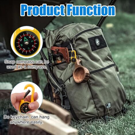Il vous indique la direction à suivre en extérieur et vous permet de ne jamais vous perdre., 2., L'porte-clés avec boussole et mousqueton est disponible en 9 couleurs. 【Portable 2 en 1】L'boussole avec mousqueton peut être utilisé comme boussole ou porte-clés. Remarques importantes : Veuillez noter qu'il peut y avoir une erreur de mesure de 1 à 3 mm due à la mesure manuelle. Elle peut être donnée à un enfant pour lui donner envie de pratiquer des activités de plein air et rester en bonne santé physique et mentale. 【Facile à utiliser】Les inscriptions sur l'boussole enfant pour extérieur randonnée sont claires et faciles à lire. Il peut être facilement fixé à un trousseau de clés, une bouteille d'eau, un sac à dos, un sac à main ou une ceinture. Boussole Randonnée Godsale-Fdit Boussole De Camping Mini Boussole Portable Vintage Avec Mini Boussole Portable Enfant Activité Plein Air Boussole De Voyage, Boussole Multiproportionnelle De Haute Précision 【Contenu de l'emballage】Vous recevrez 9 boussole enfant de couleurs différentes. Vous pouvez en changer chaque jour et porter celle qui vous porte chance, ce qui vous mettra de bonne humeur et vous apportera la chance., 3., La boussole est attachée à un porte-clés, ce qui la rend facile à transporter et évite de la perdre. Sans opération complexe, ces porte-clés boussoles de randonnée sont d'excellents compagnons de voyage. 20Pcs Boussole Bouton Boussole Camping Boussole Boussole De Poche... Contenu de l'emballage : 9 pièces de couleurs différentes mousqueton multifonction avec boussole Ils sont également parfaits pour les chasses au trésor, les fêtes à thème, les sacs cadeaux, les cadeaux de fête et les récompenses scolaires. Il suffit de placer la boussole de randonnée à l'horizontale pour qu'elle pivote automatiquement et indique le nord. Thermomètre Boussole Mini - MINIFINKER - Portable Étanche... 【Indispensable pour les aventures en plein air】Ces porte-clés boussoles multicolores sont les compagnons idéaux pour le camping, la randonnée, l'escalade, le vélo, la pêche et autres activités de plein air. La boussole remplie de liquide est de fabrication soignée, et la molette rotative sous vide et flexible garantit des mesures précises et une longue durée de vie. Veuillez vous assurer que cela ne vous pose pas de problème avant d'enchérir.