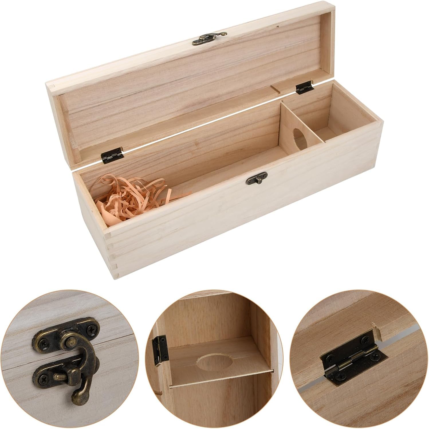Boîte Caisse à Vin en Bois avec Couvercle Coulissant, Boîte de Coffret cadeau vin Bordeaux D de Dauzac - Bordeaux Shop Coffret Vide Personnalisable Peinture Pyrogravure Bouteille De Vin, 1 Bouteille, 35x9,8x10cm, Boite Eois Avec Couvercle Coffret Vin Cadeau Spécifications:Matériau: boisCouleur: couleur boisLongueur: environ 35 cmLargeur: environ 9,8 cmHauteur: environ 10 cm Contenu de l'emballage:1 x Coffret Cadeau en Bois pour Vin Le couvercle permet d'ouvrir et de fermer facilement la boîte pour accéder à votre bouteille de vin préférée. 12 charnières de boîte en bois avec vis pour coffret à bijoux,cadeau... 【Boîte sécurisée avec couvercle】 : la boîte de présentation du vin est équipée d'un fermoir pour protéger vos articles de la poussière, de la saleté et des dégâts causés par l'eau. 【Matériau de qualité supérieure】 : notre coffret cadeau vide pour vin est fabriqué en bois naturel de haute qualité, réutilisable, fiable et sans odeur, conservant la sensation naturelle originale des produits en bois. Coffret cadeau idéal pour Thanksgiving, Noël, mariages, anniversaires, fêtes et pendaisons de crémaillère. Il peut être facilement coloré et peint et est parfait pour les loisirs créatifs, la teinture, le vernissage, l'embellissement et la pyrogravure.