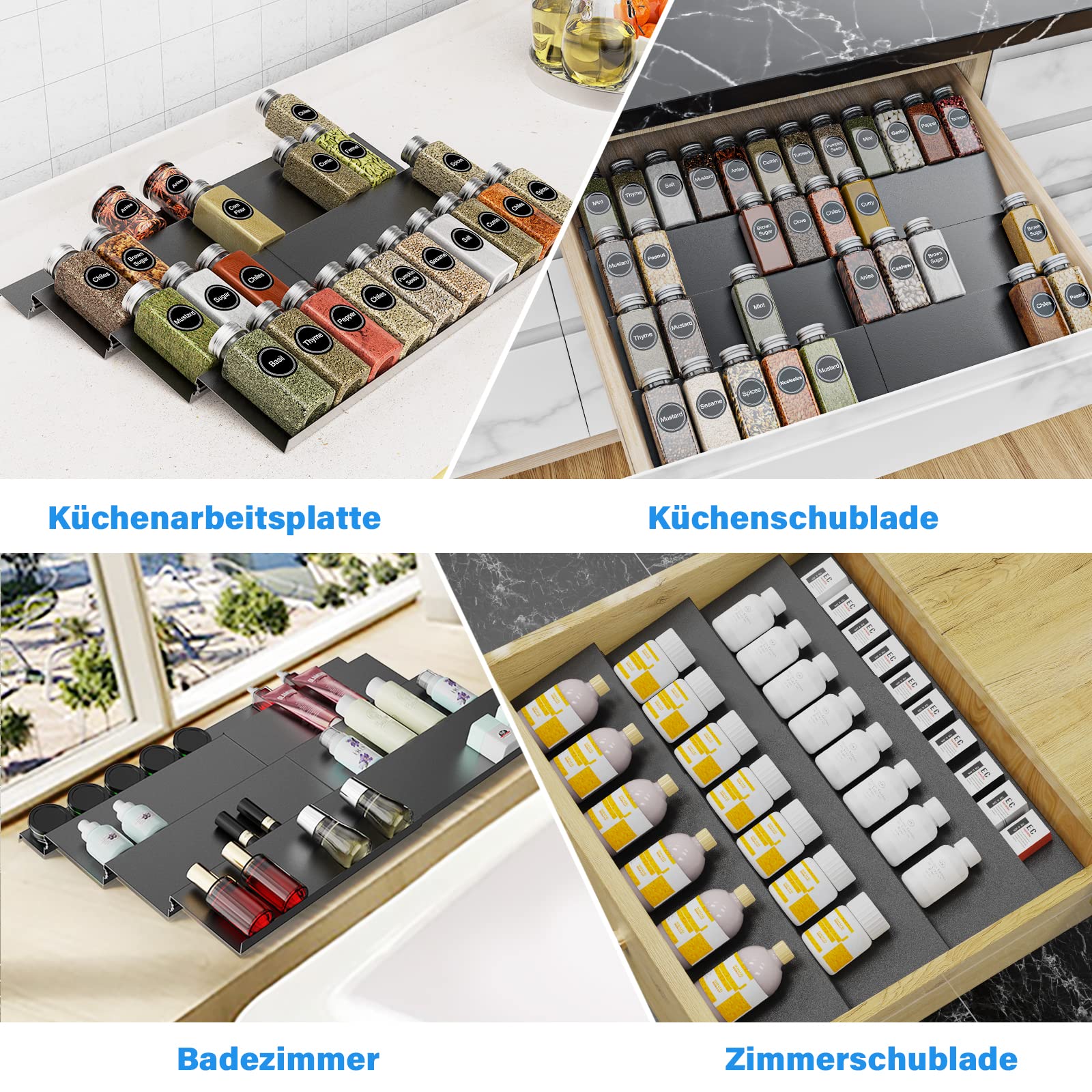 Pour nettoyer le porte-épices, il suffit de l'essuyer avec un chiffon humide. Dimensions maximales : 67 x 40 x 3,5 cm Le tiroir à épices est en aluminium solide. Le tiroir à épices se compose de 8 inserts individuels. Rangement Epice Tiroir Boutihao Étagère à Épices Pour Tiroirs Extensible De 4 Niveaux Range Rangement épices Herbes Condiments Taille la plus petite : 34 x 40 x 3,5 cm. L'étagère à épices est conçue à un angle incliné, ce qui vous aide à lire facilement le texte de l'étiquette sur les pots d'épices et permet de trouver les pots en un clin d'œil. Le tiroir convient également pour ranger le vernis à ongles, le parfum et d'autres produits cosmétiques. Une belle cuisine, c'est aussi une belle vie. Rangement Cuisine Epices, Étagère À Épices De 2 Étages Range Épices En Le montage se fait sans outil, peut être utilisé ensemble ou individuellement. Veuillez mesurer la taille du tiroir avant d'acheter. Si vous avez des problèmes, veuillez nous contacter, nous vous offrons deux ans de garantie gratuite. Les porte-épices en aluminium ne se cassent pas et ne se déforment pas facilement comme le plastique, et ne sont pas non plus sensibles à l'humidité et aux moisissures comme le bois ou le bambou. Le tiroir à épices est nettement plus ordonné que le rangement des épices dans un meuble suspendu. L'étagère à épices est conçue à un angle incliné, ce qui vous aide à lire facilement le texte de l'étiquette sur les pots d'épices et permet de trouver les pots en un clin d'œil Étagère À Epices Tiroir, Rangement Epices Cuisine Tiroir En Métal, Extensible De 29Cm À 58Cm... Remarque : Veuillez vous référer à l'image pour connaître la taille exacte de chaque pièce. La surface du tiroir à épices est vaporisée de peinture antidérapante noire, ce qui empêche les pots à épices de glisser. Le tiroir à épices convient aux tiroirs de différentes largeurs. 🧂【Aluminium de Haute Qualité - Facile à Nettoyer】L'organisateur d'épices est fabriqué en tôle d'aluminium résistante aux chocs. 🧂【Pratique Organisateur d'épices】 Le tiroir à épices compact offre beaucoup d'espace de rangement pour diverses épices, ingrédients de pâtisserie, vitamines, compléments alimentaires ou médicaments. 🧂【Libre Divisible】 Le tiroir à épices se compose de 8 pièces individuelles et peut être étendu de 29 cm à 58 cm.