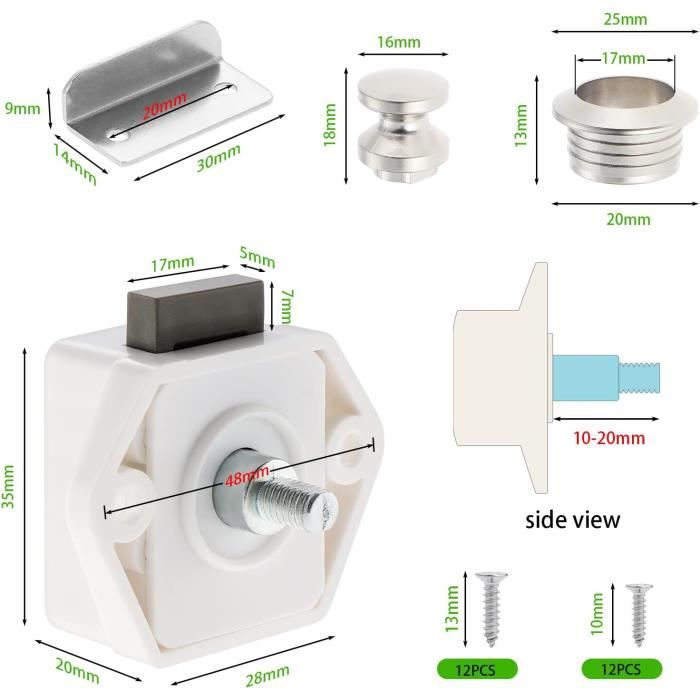 Accessoire Meuble Bateau Bouton Poussoir Camping Car - Serrure Loquet Porte Fermeture Placard Bouton Pour Rv Caravane De Poignée Verrou Alliage Zinc Bouton Poussoir Camping Car - Loquet Serrure Bouton Fermeture Porte Placard Pour Rv Caravane De Moteur 5 Pieceschrome 77643127 Bouton Poussoir Pour Porte D'Armoire, Camping-Car, Caravane, Camping... Diamètre du trou : 26 mm. la couleur réelle du produit peut être légèrement différente de celle affichée sur le site Web., 2., Veuillez prévoir de légères différences de mesure manuelles dans les données. Fait de matériaux de haute qualité, durable et pratique Convient à toutes les épaisseurs de porte : 15 mm-18 mm. Le verrou lui-même a à la fois une fonction de verrouillage et une fonction de poignée. Il est adapté à tous les types de meubles, avec une belle apparence, une couleur élégante, une installation simple et une utilisation pratique. Évitez que tous les types de yachts, de bateaux et de camping-cars secouent pendant le processus de mouvement, ce qui entraînera l'ouverture des portes des meubles d'intérieur. EN STOCK : Bouton meuble camping car pas cher. Grand choix, promos permanentes et livraison rapide partout en France. Paiement sécurisé