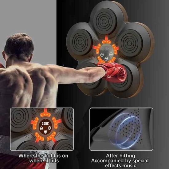 Punching Ball Musical Adulte Music Boxing Machine De Boxe U00e9lectronique Intelligente LED Avec Musique, 9 Vitesses, 9 Modes D'entraînement Machine A Boxe Musicale Enfant Le volume réglable garantit un plaisir sans fin. Boxe Murale Interactive Bluetooth Boxing Machine Moderne Machine De Boxe Pour Enfants, Musique Numérique Avec Lumière LED Cool Machine A Boxe Musicale Enfant Appareil Fitness Divertissant Les lumières LED colorées intégrées se synchronisent avec la musique et vos mouvements pour une expérience d'entraînement stimulante et immersive. Machine De Boxe Intelligente : La Machine De Boxe Musicale Dispose De 9 Modes Et De 18 Vitesses Qui Sont Parfaitement Synchronisées à La Musique Pour Une... Machine de Boxe Musicale pour Enfant, avec Gants - Bluetooth - 3 Modes de Jeu Interactifs - Sac de Frappe Murale avec Affichage LED - Jouet Enfant 3-12 Ans... ✔️ Un outil de boxe innovant - Grâce à des jeux de boxe rythmés et des modes lumineux interactifs, il améliore la précision, le rythme et la motricité. Sa construction en ABS robuste garantit une durabilité accrue et une sécurité optimale pour tous les âges. C'est un excellent moyen d'encourager l'activité physique, de réduire le stress et d'améliorer la concentration, tout en s'amusant ! Avec 11 niveaux de vitesse réglables et un comptage intelligent des coups, des lumières LED interactives et des effets sonores réagissent à chaque coup, améliorant la coordination, les réflexes et l'endurance des enfants comme des adultes. ✔️ Idéal pour toute la famille - Ce ring de boxe musical, léger et robuste, est facile à installer et idéal pour un usage domestique. Machine de Boxe Musicale, LED Boxe Mural Musique avec Gants de Boxe, 3 Modes de 11 Vitesse, Comptage Intelligent et Mode Bluetooth, Music Boxing Machine pour Adultes et Enfants