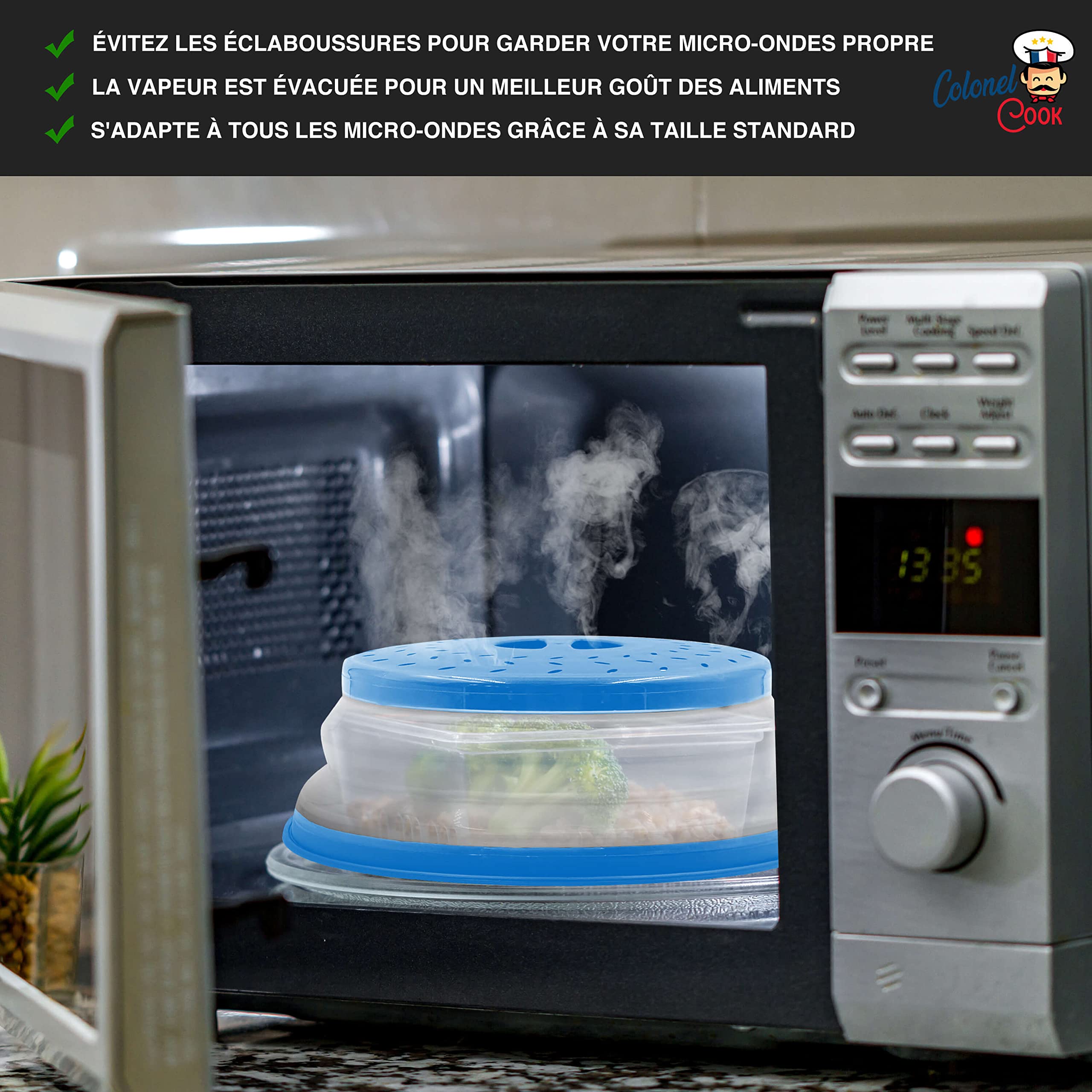 Couvercle 26cm Pliable Cloche Micro Onde Sans Bpa, 2 Pièces Couvercle Pliable Pour Couvercle Micro Onde Cloche micro onde sans BPA pour la cuisine - Couvercle micro ondes Zyluniy Cloche micro onde sans bpa, 2 pièces Couvercle pliable pour micro-ondes, panier filtrant avec trous pour la vapeur Couvercles pour micro-ondes pour... Le set comprend 2 couvercles pliables aux couleurs modernes (bleu et gris) ainsi que des bacs de récupération assortis, parfaits pour un usage quotidien. Le couvercle pliable pour micro-ondes avec trous spéciaux pour la vapeur : Empêche les éclaboussures dans le micro-ondes Maintient les aliments uniformément humides Permet une évacuation contrôlée de la vapeur Réglable en hauteur jusqu'à 3 cm Peu encombrant et pratique: Entièrement pliable pour un rangement facile Facile à nettoyer (lavable au lave-vaisselle) Avec bacs de récupération pratiques inclus Matériaux sûrs: En plastique alimentaire Résistant à la chaleur jusqu'à 100 °C Sans BPA ni substances nocives Léger et durable Utilisation pratique: Poignée ergonomique pour une manipulation facile Facile à ouvrir et à fermer Facile à utiliser d'une seule main Surface antidérapante Utilisations multiples Non seulement comme couvercles pour micro-ondes, mais aussi : Comme passoire pour les fruits et légumes Pour conserver la fraîcheur des aliments Comme couvercle pour les bols Pour transporter des aliments Caractéristiques techniques : Matériau : plastique alimentaire Couleurs : bleu et gris Dimensions : 26 x 8 cm Contenu de la livraison : 2x couvercles pliables pour micro-ondes, bacs de récupération assortis (bleu et gris) 🍛【Conception peu encombrante】Le couvercle pliable pour micro-ondes avec évacuation de la vapeur permet à la vapeur de s'échapper et garde vos aliments humides. Notre set de couvercles pour micro-ondes haut de gamme offre la solution idéale pour réchauffer vos plats au micro-ondes de manière propre et sûre. La hauteur peut être réglée à au moins 3 cm pour gagner de la place dans votre cuisine. 🍛【Matériaux sûrs】Notre couvercle pour micro-ondes est fabriqué en plastique alimentaire, non toxique et résistant à des températures allant jusqu'à 100 °C. Idéal pour le contact direct avec les aliments. Ce couvercle est idéal pour chauffer des aliments au micro-ondes tout en empêchant les éclaboussures. Les perforations permettent à la vapeur de s'échapper, garantissant un chauffage uniforme et sûr