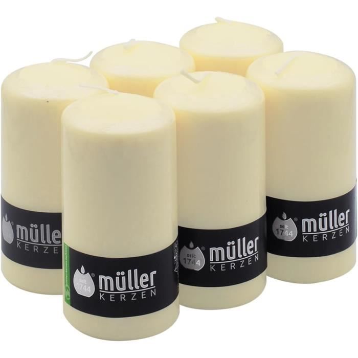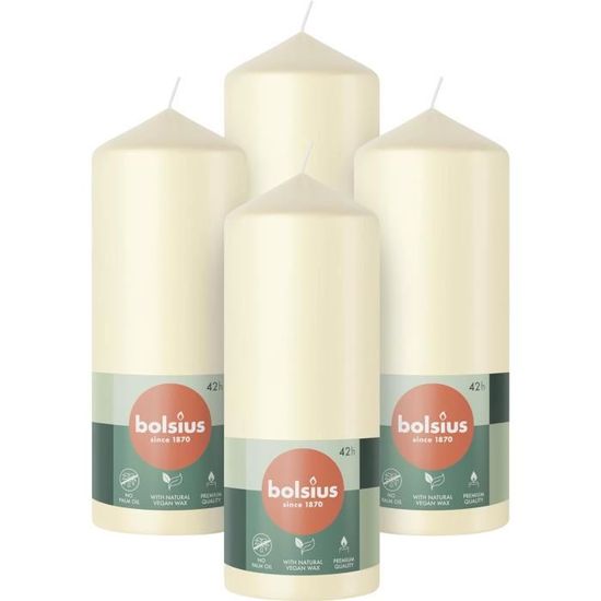 Non parfumées plus de 45 heures de combustion : ces bougies pilier non parfumées sont des bougies piliers à combustion longue qui restent allumées pendant au... Brûler temps en heures: 94 Des bougies de qualité fabriqués à partir de 100% de paraffine bougie de cire au Nom européenne (ECA) en Allemagne Bougies Allemandes Décoratives Bougie Blanche Bougies Piliers Ivoire Bolsius - Lot De 8 - Brûlent 43 Heures - Non Parfumées Bougies Décoratives Longue Durée Bougie Blanche Rituel Taille (hauteur x diamètre): 15 x 8 cm , Coloris: Ivoire Bolsius - Lot de 4 bougies pilier - Ivoire - 15 x 6 cm - Longue durée de combustion de 42 heures - Sans parfum - Cire végétalienne 5% naturelle - Sans huile de palme Les bougies confectionnées par nos soins sont soumises au contrôle de l’association allemande pour la qualité des bougies « ECA ». Lot de 4 Bougies Pilier Essentiel II 16cm Fruits Rouges