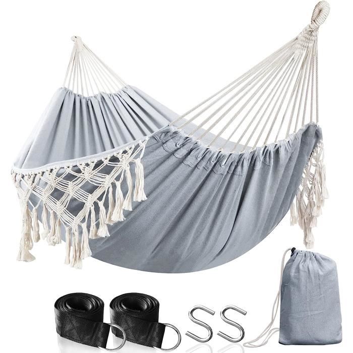 Que ce soit pour profiter de la brise fraîche sur une plage ou regarder les étoiles depuis votre jardin, l'ouverture d'un hamac Hamac D’extérieur Et Intérieur Confortable Hamac Brésilien Avec Sangles Darbre – Hamacs En Coton Hamac Sac Transport Hamac brésilien sûr et fiable : le mouvement de balancement de la corde solide de 350 g dont l'articulation est spécialement tissée selon les règles de physique afin que chaque corde puisse supporter le même poids. Hamac d'intérieur en matériau de haute qualité : notre hamac est fabriqué à partir de matériaux en coton et polyester ultra confortables et étroitement tissés, il offre un confort exceptionnel où que vous choisissiez de vous détendre. En outre, la construction robuste du hamac assure la sécurité des enfants et des animaux domestiques. Le tissu en toile respirante et robuste en fait un hamac confortable de style cocon, qui peut vous garder en sécurité et profiter d'un bon moment de loisirs. Hamac de camping en plein air Hamac portable parachute nylon sac à dos Cela les rend idéales pour les amateurs de plein air qui apprécient la commodité et veulent apporter du confort avec eux partout où ils vont., 4., Installation facile : l'installation d'un hamac est rapide et simple. Hamacs de taille unique parfaits pour l'extérieur : balançoire de hamac de INNO STAGE avec une surface de lit hamac de 220 cm et une largeur de 120 cm, nos hamacs sont conçus pour accueillir une seule personne parfaitement. Ce mouvement vous aide à vous endormir plus rapidement dans des stades de sommeil plus profonds et peut réduire les mouvements et les virages tout au long de la nuit., 7., Connexion avec la nature: Les hamacs vous permettent de vous immerger pleinement dans la nature. assurant une expérience douce, confortable, respirante et durable. INNO STAGE Hamac avec service après-vente parfait : en cette période spéciale, nous vous souhaitons tout le meilleur, espérons que notre hamac peut vous apporter une belle expérience d'achat et un bon moment à la maison. Hamac Suspendu Exterieur Hamac Brésilien Hamac De Camping Double Et... Hamac Moustiquaire 2 Personnes, Hamac Portable Avec Sangles D'Arbre... Ils sont légers, compacts et faciles à ranger dans un petit sac de transport. Il n'y a pas besoin d'assemblage compliqué ou d'équipement supplémentaire., 5., Gain de place : contrairement aux sièges traditionnels tels que les chaises ou les bancs, les hamacs prennent un minimum de place lorsqu'ils ne sont pas utilisés. Il peut supporter une capacité de poids allant jusqu'à 110 kg, assurant stabilité et sécurité lors de l'utilisation. Le design du hamac s'adapte à votre corps, offrant un excellent soutien et éliminant les points de pression., 2., Polyvalence : les hamacs sont incroyablement polyvalents et peuvent être utilisés dans divers environnements.