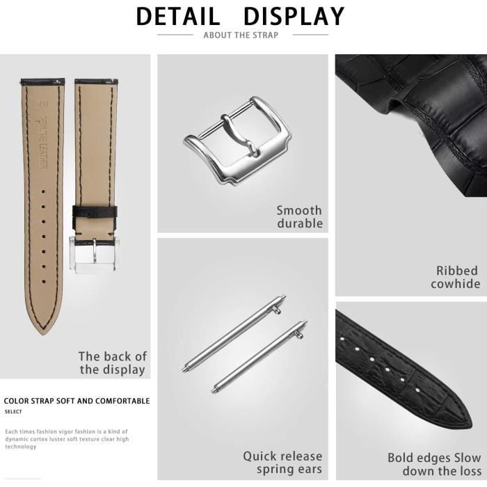 Paquet inclus: 1* Bracelet de Montre Et la conception imperméable à l'eau rend le bracelet pas facile à être érodée par la sueur, ce qui rend le bracelet dure plus longtemps. Le bracelet entier est simple et de bon goût. * S'il vous plaît permettre 2-3mm écart en raison de différentes méthodes de mesure. Bracelet De Montre Femme WSLCN Bracelet De Montre En Acier Inoxydable Vintage Ru00e9tro Le matériau choisi pour ce bracelet est un cuir de haute qualité, imperméable et respirant, pour une expérience de port la plus confortable. Matières solides et durable pour un port de longue durée. WOCCI 18mm Fleurs Bracelet de Montre pour Femme, Cuir Véritable, Bande... Si vous rencontrez des problèmes d'utilisation, n'hésitez pas à nous contacter et nous vous fournirons un service de qualité. Bracelet de Montre en Cuir de WSLCN – Design Classique et Chic pour Hommes et Femmes. Le cuir est délicat et flexible, et la texture sur le bracelet est claire et brillante. Bracelet Cuir Véritable Bracelet De Montre Rétro En Cuir Véritable Avec Barre De Libération Rapide Pour 19mm (Bleu Bracelet Montre Rétro Homme Femme La boucle en métal est en acier de haute qualité, brillante et difficile à rayer, reflétant votre goût en détail. Ce bracelet est simple et exquise et constitue un bon cadeau pour la famille et les amis. Nos bracelets ont subi des contrôles de qualité rigoureux Nos bracelets ont subi des contrôles de qualité rigoureux.
