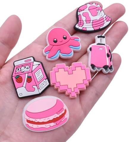 Breloques Chaussures LGWJHCY Breloques Pour Chaussures Roses, Décorations De Déco Bracelets DIY Fête Breloques de chaussures roses pour filles et femmes, épingle mignonne Ces charmres de chaussures sont trop fun pour customiser tes sabots, sandales ou même tes sacs ! Le pack de 10 offre plein de motifs et couleurs différents... Chaque jour est plus brillant, plus élégant, plus vibrant et amusant. Matériau durable : cet accessoire de sabots est fabriqué en PVC, léger, résistant à l'usure, résistant à la corrosion, beau en apparence, motifs clairs, couleurs vives, pas de déformation, vous pouvez les utiliser pendant une longue période. Facile à utiliser : placez la décoration de la chaussure avec la chaussure et glissez-la dans le trou que vous voulez à un angle de 45°, vous pouvez obtenir une décoration de chaussure mignonne et intéressante ; lorsque vous le retirez, poussez lentement la décoration de la chaussure, puis placez la chaussure pour enlever la garniture. Caractéristiques : Matériau : PVC. Les couleurs vives rendent vos chaussures plus attrayantes et amusantes. Idées cadeaux : les décorations de chaussures roses sont également un cadeau idéal pour vos proches. Ces étiquettes de chaussures roses sont parfaites pour les cadeaux d'anniversaire des enfants, les cadeaux d'Halloween, les jouets de trésorerie, les prix de récompense scolaire, etc. Donnez du style à vos sabots avec ces 50 breloques adorables ! En PVC léger et sans danger, motifs variés de dessins animés (non répétitifs
