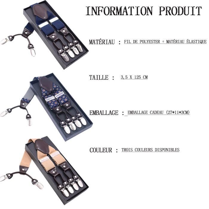 Bretelles nobles 3 clips en forme de Y avec motif Contenu du paquet : 1 porte-jarretelles. Bretelles Homme Femme Extensibles Unique Bargains Bretelles Réglables à Clip Élastique En Y De 2,4 Cm De Large Pour Femmes Bretelles Vintage Y Convient pour les mariages, dîners, fêtes, réunions d'affaires., ., ., Caractéristiques : Composant : bande en caoutchouc., Largeur : environ 2,5 cm., Quantité : 1 pièce. Détails du produit Cet article est une bretelle pour hommes et femmes. Avec un design classique et élégant, ce bretelles en forme de Y est livré avec 3 clips et est fabriqué avec l'élastique le plus confortable pour un confort quotidien. Il est adapté pour les pantalons, jeans, shorts, vêtements décontractés, vêtements formels, etc. Caractéristiques - Couleur : Bleu marine... Largeur de 25mm, longueur environ 100cm - réglables pour s'adapter à toutes les morphologies. Parfaites pour le boulot, les mariages, les soirées ou même le... Que ce soit pour une sortie décontractée ou une occasion spéciale, ces bretelles polyvalentes mettront en valeur votre style Merci de ne commander que si vous acceptez cette marge d'erreur. Ceinture tissée, ces bretelles sont adaptées à la plupart des morphologies Ceinture tissée, ces bretelles sont adaptées à la plupart des morphologies Pour les hommes et les femmes qui apprécient les accessoires tendance qui se marient facilement avec différentes tenues. La couleur de l'article peut varier de celle de la photo, en fonction des paramètres d'affichage et de luminosité de votre ordinateur. Bretelles réglables de 2,5 cm avec clips antidérapants, design vintage en forme de Y, caoutchouc extensible pour homme et femme Caractéristiques : Ces bretelles classiques sont un accessoire indispensable pour les femmes et les hommes avant-gardistes.