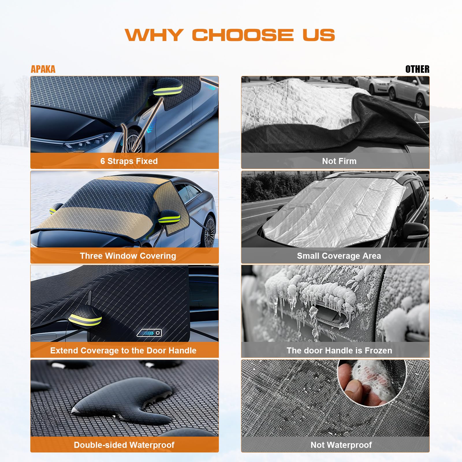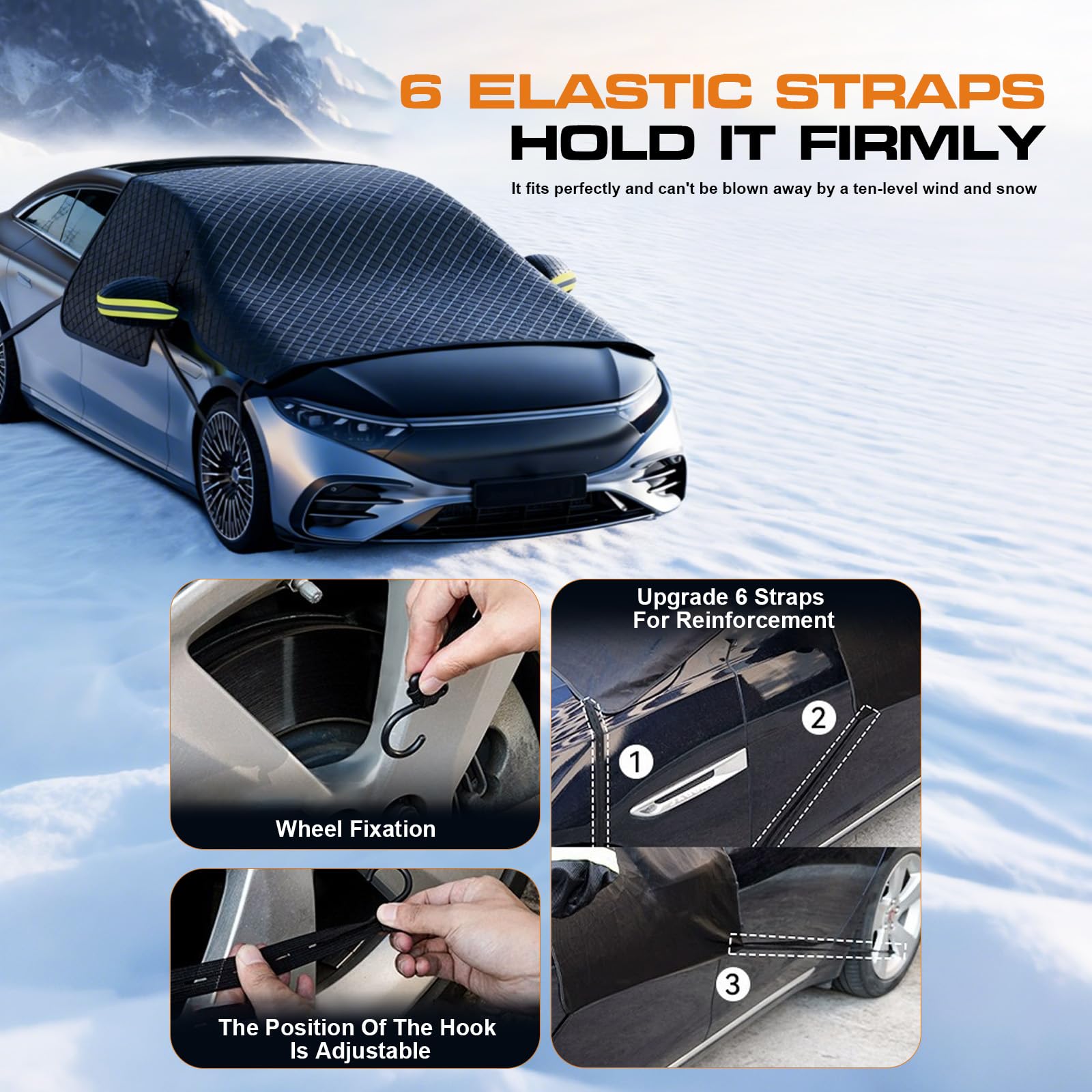Couverture de pare-brise, couverture de pare-brise de Elle offre une protection solaire, une isolation thermique, une protection contre la pluie, la neige, le vent, la poussière et les rayures, gardant l'intérieur du pare-brise sec et propre Universelle Couverture Pare-Brise Voiture Bâche Protection Magnétique Anti UV Givre Housse Pare-brise Composée de 7 couches de matériau composite, elle est résistante à l'usure et aux déchirures. Housse de pare-brise universelle : notre housse de pare-brise de voiture mesure 304 x 145 cm, couvre une grande surface, convient à la plupart des berlines, voitures, voitures compactes, SUV, camions et mini-fourgonnettes, le protecteur de rétroviseur est équipé d'une bande d'avertissement réfléchissante pour éviter les collisions lors... La housse de pare-brise universelle APAKA offre une protection complète contre les intempéries, gardant l'intérieur de votre voiture au frais en été et au sec en hiver En hiver, il protège le pare-brise de la neige et du gel, et dégivre et dégivre en quelques secondes, pour un gain de temps considérable Six sangles élastiques maintiennent solidement votre véhicule, offrant une protection complète Le pare-brise est fourni avec six sangles élastiques avec crochets en plastique pour une suspension aux passages de roue ou aux montants. Tissu Oxford épais: Cette housse de pare-brise est imperméable et double face. Housse de pare-brise universelle : notre housse de pare-brise de voiture mesure 304 x 145 cm, couvre une grande surface, convient à la plupart des berlines, voitures, voitures compactes, SUV, camions et mini-fourgonnettes, le protecteur de rétroviseur est équipé d'une bande d'avertissement réfléchissante pour éviter les collisions lors du stationnement de nuit. Son tissu Oxford épais et ses sangles élastiques assurent une couverture sûre et durable.