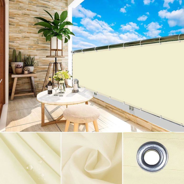 Store Balcon Anti-soleil Brise Vue Balcon Jardin Imperméable Cache Balcon Brise Vue Occultant Toile Crème Solaire Protection Solaire Jardin Cache Vue Balcon 60 X 900 Cm Toile De Balcon, Ecran De Protection Brise Vue Balcon Vert HDPE Imperméable avec Oeillets Attaches de câble... Fonction du produit: protection UV, imperméable, étanche à l’intimité Champ d’utilisation: patio, jardin, terrasse, piscine, arrière-cour, balcon ou autre garde-corps de clôture extérieure Listes de colisage 1x Cache Brise Balcon, 1x Corde, Note: 1., Il peut y avoir une légère aberration chromatique due à la différence entre la lumière ambiante et le moniteur., 2., La taille est mesurée à la main et il peut y avoir une erreur de 1 à 2 cm. Espacement des trous: 50 cm ✔ Facile à installer : Il y a deux outils d’installation, qui peuvent être installés avec des sangles ou des cordes, qui sont enfilées à travers des anneaux en acier inoxydable et attachées à des garde-corps. ✔ Convient à de nombreuses occasions : ce chiffon d’ombrage solaire nvdsivee protège du soleil, de la pluie et de la poussière, et convient à toutes les occasions telles que les patios, les cours, les jardins, les arrière-cours, les piscines, les balcons ou d’autres lieux extérieurs. ✔ Plusieurs couleurs et tailles : Cette voile d’ombrage est disponible en 12 couleurs et est disponible dans une variété de tailles pour les garde-corps de clôture pour les jardins extérieurs, les balcons, les patios. Brise Vue Balcon, Canisse Pvc Avec Serre-Câbles, Solide Opaque...