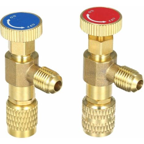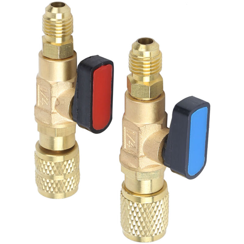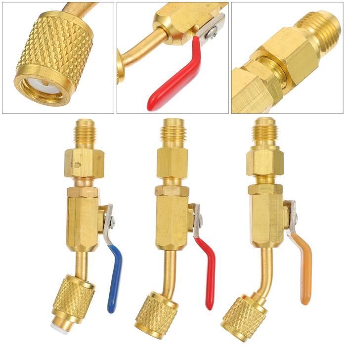 Raccord Charge Fluide Frigorigène Vanne De Charge De Réigérant Avec Broche En Laiton, Vanne De Charge à Souder - Chine Vanne D'accès Et Clapet Anti-retour Prix Adaptateur Pour Tuyau De Clim ADAPTATEUR DE VANNE de charge de réfrigération compact R410 R22 pour Vanne de charge de réfrigérant R12 R410, R12 R22 - 1/4 mâle vers 1/4... construction robuste garantit des performances durables, ce qui le rend idéal pour l'entretien du CVC lourd et l'utilisation fréquente dans des environnements exigeants. [Performances d'étanchéité améliorées] Équipés d'un joint à vis intérieure et de quatre joints de fluor Cette vanne offre une rétention de pression exceptionnelle. Le système d'étanchéité avancé empêche les fuites et assure un fonctionnement fiable dans toutes vos applications de CVC et de réfrigération. Spécifications : Type d'article : Vanne de charge de liquide de refroidissement Matériau : Alliage de laiton Liquide de refroidissement applicable : R22, R32, R410 Contenu : 1 vanne 1 connecteur 1 capuchon de protection Mode d'emploi : Vérifiez le modèle approprié avant utilisation [Compatibilité universelle du thread] Conçu avec des threads universels de connexion rapide, cette valve polyvalente s'intègre de manière transparente avec divers systèmes de tuyauterie. Il s'adapte sans effort à des lignes de refroidissement R22 R32 et R410 éliminant le besoin de plusieurs adaptateurs ou des raccords spéciaux. petite fait de l'installation dans les zones confinées un jeu d'enfant tout en maintenant une fonctionnalité complète pour vos besoins de contrôle des fluides de refroidissement. 2pcs Valve de sécurité Liquide R410A R22 climatisation réfrigérant 1/4...