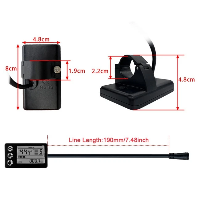 Dimensions : environ 10 x 8 cm. Il permet aux utilisateurs de surveiller divers paramètres tels que la vitesse, le niveau de la batterie et la distance parcourue, améliorant ainsi l'expérience de conduite globale. Installation simple : avec son design convivial, cet écran est incroyablement Il peut être rapidement monté sur la trottinette électrique sans aucun tracas ou procédures compliquées, ce qui vous permet d'économiser du temps et des efforts. Caractéristiques : Matériau : ABS., Couleur : noir. KIT DE MODIFICATION d'écran LCD pour scooter électrique précis et Nom du produit : affichage Poids : environ 110 g/lot. * Bonne compatibilité avec scooter, 6 broches. INTERFACE 6 BROCHES écran LCD vélo moteur compteur de vitesse écran... Il fournit des informations vitales en un coup d'œil, une conduite sûre et agréable. Caractéristiques : * *Matériaux : * Fonctionne sur les trottinettes électriques 36-60 V. 【Construction】 Fabriqué à partir de matériaux, ce présentoir est conçu pour résister aux rigueurs d'une utilisation quotidienne. Panneau De Contrôle LCD Pour Trottinette 36-60V Écran LCD M5 Pour Vélo Électrique, Panneau D'Affichage Universel 5 Broches, Compatible 24V 36V 48V 60V, Moniteur De Vitesse Pour Scooter, Diamètre 31,8/22,2 Mm Contrôleur Vitesse Scooter écran 48V 60V 72V LCD écran compteur panneau de commande pour moteur de... Accessoires essentiels : cet écran est un accessoire indispensable pour les amateurs de trottinette électrique.