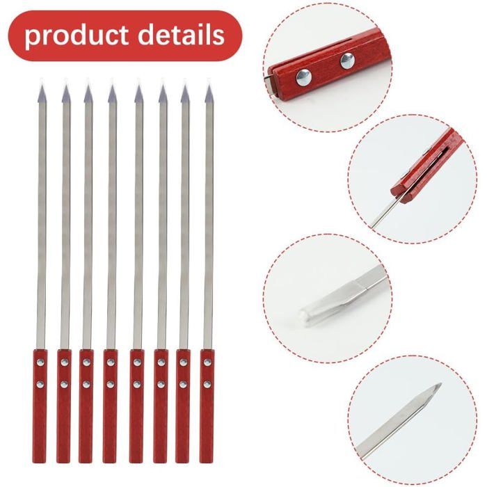 Brochettes à barbecue de haute qualité : Le brochettes pour barbecue contient 10 broche kebab avec boîte. brochette inox manche bois ga34t ga42t ga53t acier inoxydable tige... Facile à nettoyer : Ce brochette barbecue est poli pour une surface lisse et facile à nettoyer. Forme en U pour une stabilité supplémentaire : le pic brochette inox a exactement la bonne longueur de 32 cm. Pic Brochette 32 Cm Manche Bois THKO Brochettes Pour Barbecue, Lot De 10 Pcs 32cm Pic Brochette Inox, Pique Brochette Avec Manche En Bois, Broche Kebab Pic à Brochettes Réutilisables U Brochettes Barbecue Inox Pour Plat Griller Pour Viande Légumes Fruits Broche kebab est sûr à utiliser, car tous les bords sont soigneusement polis. Broches à griller en acier inoxydable emballées dans une boîte, la boîte peut être conservée pour un stockage facile, lorsqu'elle n'est pas utilisée, vous pouvez mettre des brochettes à griller en acier inoxydable dans la boîte pour le stockage. Pique brochette est la bonne longueur pour protéger vos mains de la chaleur en toute sécurité. Pique brochette emballé avec une boîte, la boîte peut être conservée pour un stockage facile, quand il n'est pas utilisé, vous pouvez mettre les brochettes dans la boîte pour le stockage. En attendant, il peut broche kebab empêcher de tomber pendant le transport, en toute sécurité pour le transport. Chaque kebab est conçu pour vous permettre de mieux saisir, tourner et contrôler la broche et de mieux faire tomber vos aliments grillés. Les brochettes BBQ sont à double couche et le design de la fourche en forme de U empêche les aliments de se renverser ou de bouger sur les brochettes. 20 Pièces Brochettes de Barbecue en Acier Inoxydable, 38 c Brochettes... Paquet inclus 10 x brochettes pour barbecue Large utilisation : Ce pique brochette est léger et portable, parfait pour le camping, les fêtes, les pique-niques, le team building et autres activités de plein air. Lot de 10 pics à brochette inox