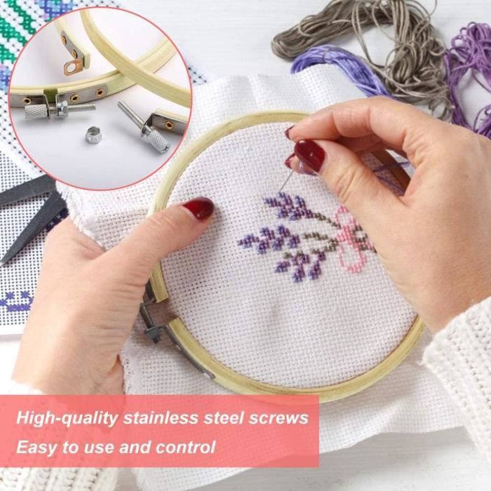 AS01871-KIT DE COUTURE.Cadre rond en bambou pour bricolage. outil de Construction durable : ces cerceaux de broderie disposent d'une base de montage durable et d'une fixation, assurant une longue durée de vie pour divers... Cercles à Broder Tambour A Broder 12 Bambou 10cm - Réglables - Pour Broderie, Déco Noël, Travaux Manuels Cercles Broderie Cadre De Tambour Pour Travaux Aiguille Largement utilisé pour la broderie, la couture, le point de croix, la dentelle à l'aiguille, la peinture sur soie, etc. Diamètre extérieur : environ 13 cm., Contenu : 12 cercles à broder. Ce lot de 12 cercles en bambou de 13cm de diamètre vous accompagnera dans tous vos travaux. La vis de réglage permet de bien tendre le tissu pour un travail... Comprend 12 cercles à broder qui répondent pleinement à vos besoins de couture, pratiques et économiques. Remarque : Les mesures étant prises à la main, les tailles indiquées peuvent varier légèrement. Taille compacte, facile à assembler et à démonter, pratique à utiliser et à ranger. Merci de votre compréhension.