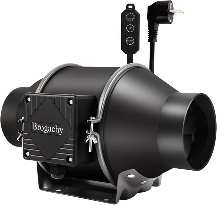 MATÉRIAUX PROFESSIONNELS HAUTE PERFORMANCE Extracteur Air Brogachy 150mm Ventilateur Extracteur En Ligne 452 M³/h Ventilation 20W Avec Contrôleur De Vitesse Cave Humide, Garages, Culture Hydroponique Tente,Salle De Bain Extraction Air Cave Hydroponie 【Installation facile et durable】 : le ventilateur Brogachy est fabriqué en plastique de haute qualité, robuste et durable, mais aussi résistant à la déformation. 【Ventilation écoénergétique】 : Ce puissant ventilateur de conduit, d'une vitesse de 4500 tr/min, peut générer un débit d'air de 170 m³/h, pour une consommation électrique maximale de seulement 6W. Chaque vitesse produit un niveau sonore différent ; plus la vitesse est élevée, plus le bruit est fort. 【Largement utilisé】: le ventilateur de conduit en ligne Brogachy de 100 mm est conçu pour la ventilation des vérandas, serres, caravanes, caves, buanderies, pièces à vivre, garages, cuisines, salles de bains, etc. EBKCQ Extracteur dair 100mm, Extracteur dair Silencieux, Conduit Pour serres, tentes de culture hydroponique, cuisines, caves humides, garages, salles de bain Résistant aux chutes Ce puissant ventilateur de salle de bain en ligne, 【Fonctionnement silencieux】 : le ventilateur de conduit en ligne de 100 mm est doté d'un variateur de vitesse qui vous permet d'ajuster le débit d'air et le niveau sonore selon vos besoins. Il augmente également la pression et le débit d'air dans les conduits. Brogachy extracteur d'air 100 Réglable, ventilateur d'extraction... 100mm Ventilateur Extracteur d'air Silencieux, 6W 221 m³/h Extracteur d... Ventilateur d'extraction équipé d'un régulateur de vitesse. MOTEUR à COURANT CONTINU Résistant aux basses températures de 0 à 100 %.