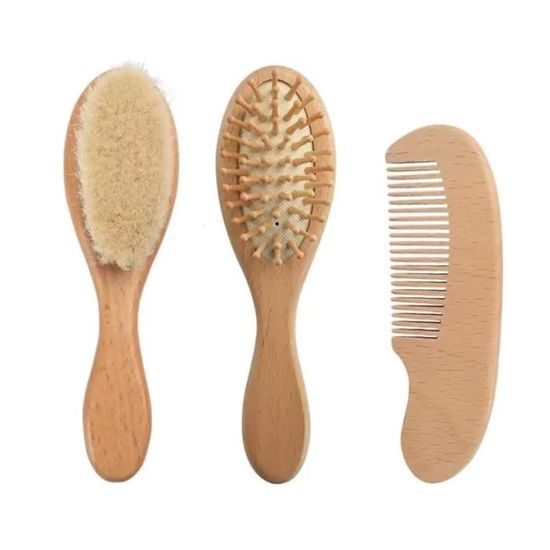 La qualité du peigne en bois est impeccable, vous pouvez peigner les cheveux facilement. La brosse de massage fonctionne très bien pour aider à stimuler la... Matériel: Bois composite, laine Poids : environ 75g/2.65oz Liste des paquets: 1 x brosse à cheveux 1 x double côté peigne • Laine douce naturelle : Avec la crinière la plus fine fait de poils de chèvre naturels, vous pouvez brisser délicatement les cheveux de votre bébé, masser son cuir chevelu et prendre un bain ou vous déduire Brosse Personnalisée Brosse à Cheveux Bébé NATURE | Sans BPA Brosse Bebe Personnalisé HURRISE Ensemble brosse et peigne en bois pour bébé, brosse en laine