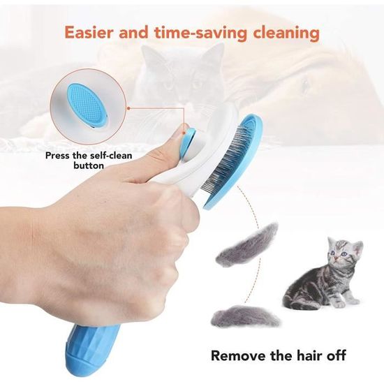 Peigne Puces Chat Brosse Pour Poil De Chat - J'aime Vraiment Chat Peigne Massage Chat Chien Poils Longs Brosse Slicker S Chat + Poignée - Brosses-Peignes Chat - Soin Flamingo Brosse Autonettoyante Pour Chien Et Chat - Toilettage Pour Chien Et... 【Conception ergonomique】 Ce peigne pour chat a une forme d'avocat, simple et élégant, léger et délicat, facile à tenir, texture confortable, livré avec un bouton pour retirer les poils, facile à nettoyer, ne gratte pas la peau de votre animal, ne s'accroche pas et n'emmêle pas les poils. Un nettoyage régulier garantit un entretien hygiénique et sain. Dites adieu aux nœuds et bonjour à un chat heureux. 【Matériaux de haute qualité】 Notre peigne pour chiens et chats est fabriqué en PP de haute qualité, non toxique, non corrosif et inoxydable, antidérapant et confortable, difficile à casser, facile et pratique pour éliminer les poils, vous offrant une expérience d'utilisation parfaite. 【Soins sains du pelage】La brosse pour chat avec bouton de déverrouillage est dotée d'aiguilles en acier inoxydable courbées à 140 degrés qui offrent un massage doux. Elle réduit le stress et améliore la circulation sanguine tout en éliminant les poils morts et la saleté. C'est également un cadeau idéal pour les amis et les membres de la famille qui ont des chats. Brosse autonettoyante pour chat] Notre brosse pour chat est dotée d'une fonction autonettoyante. Après le brossage, il suffit d'appuyer sur le bouton de nettoyage pour que les poils se détachent facilement des picots, simplifiant ainsi le nettoyage et évitant la dispersion des poils.[Brosse vapeur pour chat] Offrez à votre chat une expérience de brossage confortable grâce à sa...