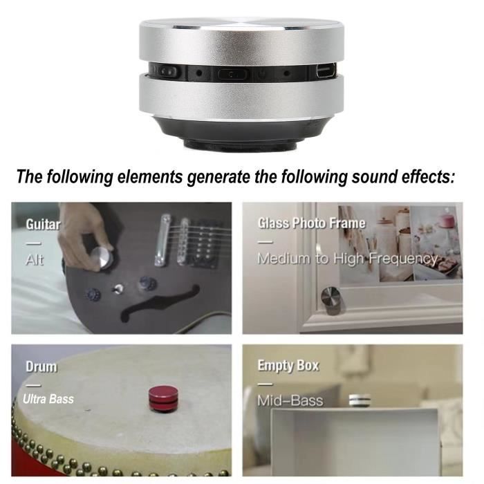 Son surround stéréo à deux haut-parleurs : La connectivité à deux haut-parleurs offre un champ sonore surround qui élimine les limites du son monophonique, améliore la spatialité et la complexité de la musique et reproduit une qualité sonore détaillée. Sxhlseller Haut parleurs à Conduction Osseuse Ultra Mini Fonction interphone et appel bidirectionnel : Cette Mini Haut-Parleur Portable Créatif sans Fil intègre un microphone et prend en charge le mode interphone bidirectionnel. Conduction Osseuse Haut-parleur à , Bruit De Sommeil à Conduction Enceinte Portable étanche Douche Radio FM intégrée pour une écoute polyvalente : Grâce à la radio FM intégrée, profitez d'un large choix de programmes radio, incluant musique, actualités et informations, sans appareil externe, répondant ainsi à vos différents besoins d'écoute. La connexion Bluetooth permet des appels téléphoniques pratiques avec une transmission vocale claire et une utilisation simple. Baffle Bluetooth, Haut-Parleur À Conduction Osseuse, Enceinte Bluetooth... Portabilité polyvalente : la puissante ventouse située sous cette Haut-parleur stéréo portable lui permet de se fixer solidement sur diverses surfaces, telles que les murs de la salle de bain, les tableaux de bord de voiture et les tables d'extérieur. Radio FM : Cette Haut-Parleur à Conduction Osseuse intègre une radio FM. Nornward Haut-Parleur Bluetooth Pour Dormir, Haut-Parleur Bluetooth À... Elle offre une expérience d'écoute unique et immersive, rendant le son plus reconnaissable Technologie de conduction osseuse : Cette Enceinte Bluetooth à conduction osseuse utilise la technologie de conduction osseuse pour créer des basses puissantes par résonance, dépassant ainsi les limites de l'audio traditionnel. Elle offre un large choix de sources audio pour répondre à divers besoins d'écoute Spécifications du produit Dimensions : 45 x 45 x 30 mm Version Bluetooth : 5., 2 Capacité de la batterie : 300 mAh Spécifications du haut-parleur : M1R (résonance) Haut-parleur : Haut-parleur résonant 36 voies, 4 W Caractéristiques du produit : Son innovant à conduction osseuse : Ce produit utilise les principes de la conduction osseuse pour produire des basses puissantes grâce à la résonance. Elle peut également se connecter directement au Bluetooth pour les appels téléphoniques et les conversations vocales, garantissant une transmission vocale claire, aussi bien pour les appels quotidiens que pour les conversations informelles, pour un confort d'utilisation optimal