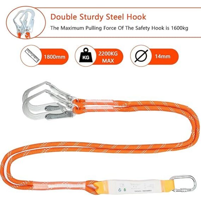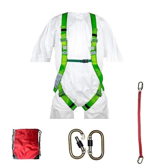 Normes de qualité : ce kit de ceinture de sécurité anti-chute est conforme aux normes européennes EN353, EN361, EN795 et est sûr à utiliser. Harnais stt de protection en cas de chutes, pour escalade des 【Large application】 : ce lien anti-chute est conçu pour réduire les chutes et les risques de glissement, sac d'amortissement attaché pour une absorption maximale des chocs. Harnais Alpinisme Escalade Btstil Harnais De Sécurité Anti-chute - 5 Points - Avec Corde Harnais Polyvalent Réglable Contenu de la livraison : 1 ceinture de sécurité à 5 points., 1 corde de sécurité Le mousqueton est situé sur la poitrine et sert de suspension de base pour la protection contre les chutes, vous pouvez l'utiliser en toute confiance. Le harnais antichute 5 points d'accroche comprend une attache sternale, ventrale, dorsale et latérale. Ce dispositif convient aux utilisateurs pesant jusqu'à... 【Bon service】: Si vous n'êtes pas satisfait de notre kit de sangles de récupération anti-chute, veuillez ne pas laisser une mauvaise évaluation et ne pas le renvoyer. 【Sangle complète du corps à 5 points】: La conception ergonomique de la ceinture de sécurité répartit la pression pour vous sentir à l'aise pendant l'escalade. Corde De Sécurité Télescopique, Anti-Chute Télescopique, Protection... La capacité de charge de la corde de sécurité est de 2200 kg et la force de traction du crochet de sécurité est de 1600 kg. 【Robuste et durable】: Cette ceinture de sécurité est fabriquée en fibre de polyester à haute résistance avec une bonne résistance à la déchirure et à l'usure. Tour de taille : 80-140 cm, tour de jambe : 60-75 cm. Dimensions (L x l Tour de taille : 80-140 cm. Parfait pour les activités de plein air telles que l'alpinisme, l'escalade, le travail en hauteur et l'exploitation de bois en hauteur.