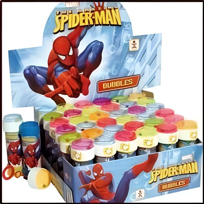 Bulles Savon Caramelle Compleanno Bambini Bubble World - Bolle Di Sapone SPIDER-MAN Per Bambini - Party Pack Confezione 12 Pz Da 60 Ml - Gadget Compleanno A Tema Supereroi - Made In Italy Bulles Bubble World Fabriqué Italie Disney Store Chaussons Spider-Man pour enfants | Disney Store Kit De Bulles De Savon Pour Les Enfants, 15 Pièces Baguette Des Bulles... BUBBLE WORLD - SPIDER-MAN PARTY PACK: Le lot de bulles de savon Bubble World - SPIDER-MAN Party Pack est parfait pour toute fête sur le thème des super-héros. La livraison comprend 12 tubes de 60 ml, garantissant un plaisir immédiat pour tous les enfants. Amusement assuré pour les fêtes d'anniversaire : les bulles de savon pour enfants sont un gadget d'anniversaire idéal. Chaque tube est prêt à créer de fantastiques bulles et faire sentir chaque enfant un vrai super-héros. Grandes bulles de savon, brillantes et colorées : avec une formule de haute qualité, les bulles de savon Bubble World Spider-Man créent des bulles larges et lumineuses qui capturent l'attention des plus petits, transformant toute occasion en un moment de pure joie. Polyvalent et pratique : idéal pour les jeux en plein air et en intérieur, ces bulles de savon gadget anniversaire enfants sont parfaites pour tout événement. Sécurité et qualité garantie : produit fabriqué en Italie, certifié hypoallergénique, sans parabène et sans gluten. ALL INFORMATION AND IMAGES RELATING TO THE PRODUCT ARE PROVIDED BY THE MANUFACTURER. LE COMPTOIR DU GEEK CANNOT BE HELD RESPONSIBLE FOR ERRORS AND TECHNICAL MODIFICATIONS. View full details
