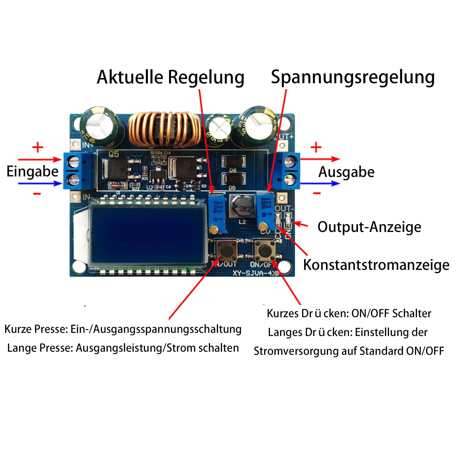 Convertisseur DC Step Up Down Automatique Buck-Boost Convertisseur D'affichage, Platine Step-Up/Down Buck Boost 12v 36v Besoin de contenu dans - Convertisseur Buck Boost ZK-SJ20 - DC- DC 300W... HW-140 DC-DC Buck Boost Convertisseur Step / Bas, écran LCD, 3A 5.5V-30V à 0 ,5 V-30V compatible avec Arduino La résolution de la tension est de 0,05 V, la résolution actuelle est de 0,005 A. Câble convertisseur de tension USB DC 5 V vers DC 12 V USB avec prise... Il n'est pas nécessaire d'ajouter une diode anti-retour lors de l'utilisation comme chargeur, car la sortie est protégée par la diode. 【Attention】 : entrée modulaire IN interdit les courts-circuits avec sortie OUT, sinon la fonction de courant constant échouera. 【Écran LCD】: Le module de régulateur de tension est équipé d'un écran LCD et peut afficher la tension d'entrée et de sortie, le courant de sortie et la puissance de sortie. Buck-Boost Convertisseur d'affichage, platine Step-Up / Down automatique DC 5,5-30 V vers DC 0,5-30 V avec écran LCD, pour Arduino, tension de courant constant réglable