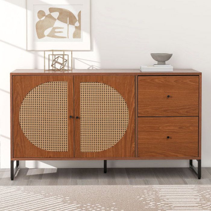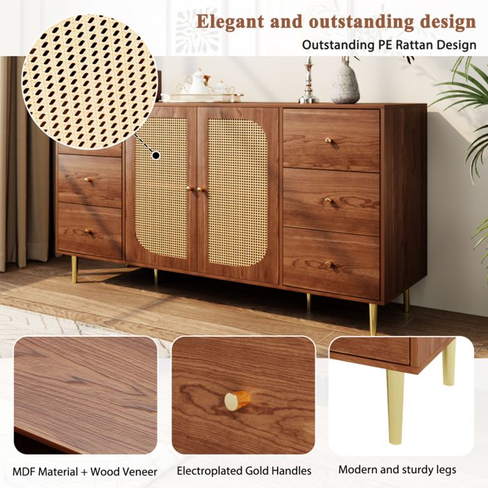Plateau robuste et spacieux Buffet avec 3 tiroirs, Couleur noyer | France 【Meuble de rangement polyvalent】Ce buffet en bois peut être placé dans votre salon, cuisine, couloir, entrée, bureau, etc. Buffet Salon Couleur Bois Buffet Bas - Buffet Marron Avec 3 Portes Décorées En Rotin Et Poignées Buffet Rotin Ce meuble de rangement en rotin est doté d'étagères intérieures et d'un plan de travail spacieux. Poignée en métal doré buthreing Armoire de rangement Buffet, armoire d'appoint avec pieds en... 【Montage facile】Ce buffet est livré avec une notice détaillée et toutes les pièces nécessaires. 【Robuste et résistant】Fabriqué en MDF de haute qualité, ce buffet est doté de dispositifs anti-basculement. Face à l'éternel défi de l'organisation dans votre cuisine ou votre salon, le buffet VOWNER se présente comme une solution ingénieuse et élégante. Avec ses cinq étagères réglables et autant de placards, il offre un espace de rangement optimisé sans compromis sur le style. Conçu en MDF de haute qualité et affichant des dimensions généreuses de 100 x 38 x 181 cm, ce meuble... 【Grand espace de rangement 】Ce meuble de rangement en rotin est doté d'étagères intérieures et d'un plan de travail spacieux. 【Design avec portes en rotin】Ce meuble de rangement est doté de deux portes en rotin. Vous pouvez ranger vos affaires en toute sécurité dans ce meuble à portes. Description du produit VOWNER Buffet en Rotin Il s'adapte à une grande variété de styles d'intérieur.