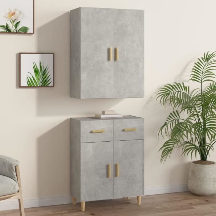 Meubles TV avec lumières LED 2 pcs gris béton 30,5x30x90 Détails:★Couleur : Gris béton★Matériau : bois d'ingénierie, verre★Dimensions : 81 x 37 x 67 cm (l x P x H)★Assemblage requis : oui Meuble Rangement Salon Bufft Avc Lumièrs LD Gris Béton 81x37x67 Buffet Led Moderne Bon à savoir :Ce produit est doté d'un connecteur USB qui nécessite une source d'alimentation USB de 5V certifiée (non incluse). Lumières LED réglables : Ce meuble de rangement est équipé de lumières LED RVB, qui disposent de différents menus pour changer la couleur de la lumière et l'ajuster automatiquement, afin de rendre la décoration de la maison colorée et belle Buffet avec lumières LED gris béton 81x37x67 cm KIN815544309... 【SATISFACTION GARANTIE】Pour toute question après la livraison, n'hésitez pas à nous contacter à tout moment. Couleur : Gris béton En cas de problème avec votre commande, n'hésitez pas à nous contacter par e-mail. Avec divers menus personnalisables, vous pouvez changer sans effort la couleur des lumières et même les régler automatiquement. Dimensions : 81 x 37 x 67 cm (l x P x H) , Assemblage requis : oui Fonction d'affichage : le dessus robuste du buffet est idéal pour afficher des objets décoratifs, des cadres photo ou des plantes en pot.