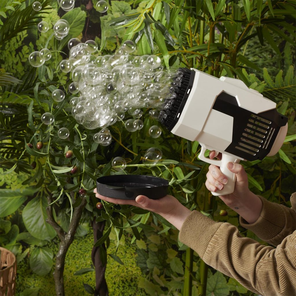 Mitrailleuse Pistolet à Bulles - Super Insolite Pistolet à bulles pour enfants et adultes. Un plaisir garanti avec cette arme à bulles. Envoûtez les enfants ou les invités de mariage avec de nombreuses petites bulles de savon produites par le pistolet à bulles et créez une ambiance unique. Idéal également pour les enterrements de vie de garçon ou les festivals, le créateur de bulles avec lumière LED est un accessoire de fête... Jouet Bulles De Savon Avec Lumière Machine à Bulles Pistolet à Bulles Machine à Bulles Savon Canon à Jouet Extérieur Bulles Description du produit Ce pistolet à bulles de savon avec lumière LED clignotante fera fureur lors du prochain anniversaire d’enfants, mariage ou tout autre évènement festif. Pistolet à bulles de savon • Dimensions H x l x P: 14,5 x 11,5 x 5 cm • Poids total: 160 g • Piles: 3 AAA (1,5 V) inclues dans la livraison • Contenant à savon 50 ml avec solution liquide • Matériel: plastique • Diamètre ouverture poignée: 2 cm • Poignée (H x l): 7 x 3 cm Pistolet à bulles lumineux • Indispensable pour le prochain anniversaire d’enfants, mariage ou gardenparty • Utilisable immédiatement – Livré avec piles et liquide pour bulles • Re-remplissable • Faites des bulles de savon en appuyant sur le bouton • Lumière LED clignotante lors de l’utilisation Mise en garde • Ne convient pas aux enfants de moins de 3 ans (petites pièces pouvant être avalées) • Ne pas boire la solution de savon • Les enfants doivent utiliser le pistolet à bulles sous la surveillance d’un adulte Livraison • 1x pistolet à bulles de savon • 3 piles (AAA) • Contenance à savon (50 ml) • Livrés avec piles • Livrés sans décorations Contenu du coffret 1x pistolet à bulles de savon, 3 piles AAA et pot à savon 50 ml Pistolet à bulles savon, lot de 3, machine, lanceur, lumière LED, H x l... Envoyez de la bonne humeur avec des bulles de savon. Pour toutes les occasions: anniversaire d'enfants, mariage, Garden party etc. Lumière LED: ce pistolet à bulles dispose d'une lumière LED qui change de couleurs lors de son utilisation Utilisation facile: visser le pot de savon au pistolet, prendre le pistolet dans la main et jouer en appuyant sur le bouton