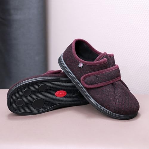 Semelle intérieure : mousse à mémoire de forme. Pantoufles Orthopédiques Femme Bumuam Chaussures Diabétiques,Ajustable Orthopedique Chaussures, Chaud Chausson Pied Usage Intérieur et Extérieur : Le fond de la pantoufle est protégé par une semelle en caoutchouc. Son utilisation est aisée pour les personnes ayant une mobilité réduite. La semelle extérieur en caoutchouc antidérapante adhère au sol pour éviter les glissades, que vous soyez à la maison ou dehors Vous pouvez la porter dans la chambre et l'utiliser pour sortir rapidement avec le chien, chercher le courrier ou profiter du soleil dans le jardin. Homme Femme Ajustable Scratch Ultra-Large Chaussures Chaussons Diabétique Chaussures pour Femmes Diabétiques en Tissu Eté Pantoufle Santé pour âgées Pieds Enflé GonfléeBrown-40 Semelle légère et antidérapante : fabriquée en mousse de caoutchouc EVA et dotée d'un motif à ondulations pour une excellente absorption des chocs et une résistance fiable au glissement sur les surfaces mouillées ou verglacées. Matériau de la semelle : mousse de caoutchouc EVA. Tissu : feutre de laine. Semelle AntidÉrapante : Les chaussons pour femme sont garnis de multicouches de mousse à mémoire de forme haute densité pour une sensation de marche confortable. Un cadeau idéal pour Noël, les anniversaires, la fête des Mères Porter des chaussures adaptées pour rester au chaud et à laise par temps froid. Occasion : Convient particulièrement aux personnes souffrant darthrite, doedèmes, de gonflements des pieds, de pieds sensibles, de diabète et de divers problèmes de pieds Matière extérieure en synthétique, semelle en caoutchouc antidérapante pour plus de sécurité. La doublure en tissu laisse circuler l'air pour garder les pieds... Fermeture velco réglable : sangles réglables permettant un ajustement personnalisé, parfaites pour s'adapter aux différents niveaux de gonflement du pied tout au long de la journée. Cadeau polyvalent et attentionné : idéales pour une utilisation en intérieur et en extérieur par tous les temps, ces bottes pratiques constituent un cadeau merveilleux et attentionné pour les parents ou les grands-parents en quête de confort et de chaleur. Ajustement par Scratch Réglable : La sangle scratch réglable permet de personnaliser facilement la serrage de la chaussure. 35Eur = Longueur de la semelle intérieure 22,5 cm 36Eur = Longueur de la semelle intérieure 23,0 cm 37Eur = longueur de la semelle intérieure 23,5 cm 38Eur = longueur de la semelle intérieure 24,0 cm 39Eur = longueur de la semelle intérieure 24,5 cm 40Eur = longueur de la semelle intérieure 25,0 cm 41Eur = longueur de la semelle intérieure 25,5 cm 42Eur = longueur de la semelle intérieure 26,0 cm Extra large : spécialement conçu pour les diabétiques et les personnes souffrant de pieds gonflés, de pieds larges, d'oignons ou de déformations du pied.