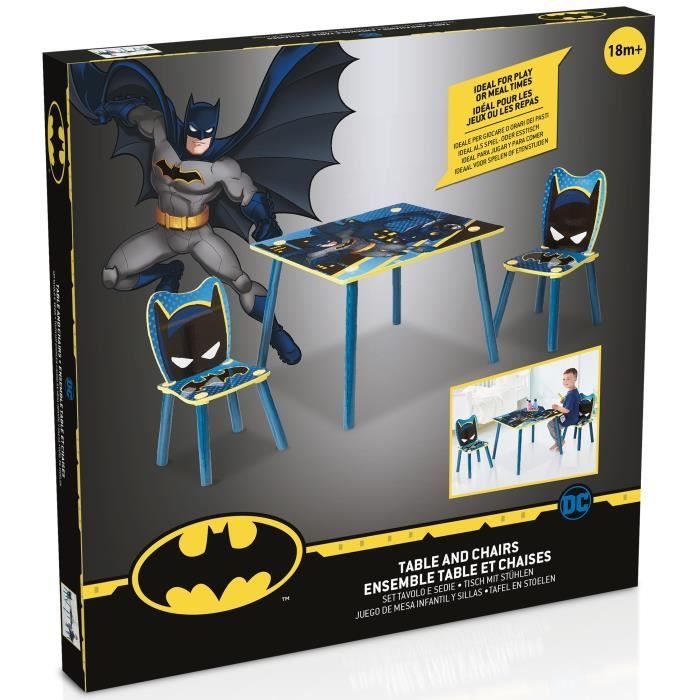 Ensemble table et 2 chaises en bois Licence officielle DC Batman Transforme la chambre de ton enfant en un quartier général de super-héros avec ce superbe ensemble en bois décoré avec Batman, le célèbre justicier de Gotham City. Nettoyage rapide avec un chiffon humide, parfait pour un usage quotidien Licence officielle DC Comics avec illustrations originales de Batman ARDITEX garantit le respect des normes les plus strictes tout au long du processus de production, afin d’assurer une excellente expérience client. Designs fidèles du Chevalier Noir, matériaux sûrs et finitions de qualité pour une expérience fiable et immersive. ✅ LICENCE OFFICIELLE : Produit sous Licence Officielle DC Comics. Coin Jeu Dessin Batman Bureau Enfant Mesa Para Niños ARDITEX - Set De Mesa Y 2 Sillas Infantiles De Madera - 50x50x44 Cm Y 26, 5x26,5x50 Cm - Ideal Para Jugar, Pintar Y Hacer Manualidades Meuble Jeu Licence DC MARVEL Heroes Ensemble table et 2 chaises pour enfants Montage facile grâce à des instructions simples et illustrées Facile à assembler et à entretenir, c’est le meuble parfait pour éveiller la créativité et l’autonomie des jeunes super-héros. Un ensemble au style urbain, parfait pour les fans de super-héros. Conçu en bois et MDF, cet ensemble décoratif et pratique est idéal pour aménager une chambre d'enfant ou un espace de jeu. Sa taille compacte, son design... Idéal pour jouer, dessiner, lire ou goûter dans un espace à soi Idéal pour les enfants en âge préscolaire, pour jouer, dessiner ou lire à leur hauteur. 🦇 DESIGN PUISSANT ET HÉROÏQUE DE BATMAN : Graphismes sombres et énergiques, avec le logo iconique et des poses d’action. ARDITEX - Ensemble Table et 2 Chaises en Bois pour LICENCE OFFICIELLE: Produit sous Licence Officielle Disney. Design fidèle au personnage, matériaux conformes aux normes de sécurité... 📐 DIMENSIONS ADAPTÉES AUX ENFANTS : Table de 50x50x44 cm et chaises de 26,5x26,5x50 cm. 📦 PRATIQUE ET FACILE À INSTALLER : Format compact pour l’intégrer facilement dans une chambre, une salle de jeux ou un coin lecture. Comprend une table de 50x50x44 cm et deux chaises de 26,5x26,5x50 cm