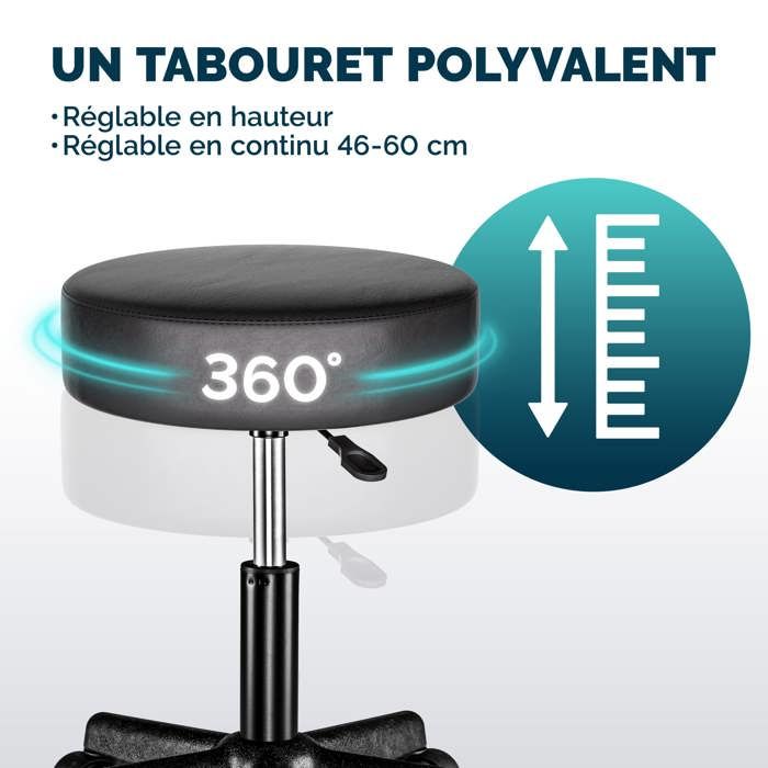 【CONFORT REMBOURRÉ】 Le tabouret est équipé d'une assise ronde en mousse haute densité de 6 cm d'épaisseur, conçue pour un soutien durable. La fonction pivotante à 360° et les roulettes permettent des mouvements fluides et une bonne mobilité dans votre espace de travail ou de soins 【ASSEMBLAGE RAPIDE ET DESIGN POLYVALENT】 Notre tabouret roulettes arrive partiellement assemblé. Gardez les mains et les pieds loin du vérin à gaz pendant le réglage de la hauteur Tabouret de bureau pivotant acier noir Kim | Maisons du Monde Une assise conçue pour le confort pendant vos périodes de travail ou de détente à la maison ou en salon Ne pas se tenir debout ou s'agenouiller sur le tabouret. BEWISHOME Tabouret à roulettes pivotant et réglable en Cuir synthétique résistant avec Large Coussin d'assise Ergonomique pour Laboratoire,Bureau,Salons... Nous nous engageons à vous fournir une expérience d'achat positive Description du produit Jconly Tabouret à roulettes réglable en hauteur avec roulettes à 360° Avertissement De Sûreté ️ Avertissement de sécurité : évitez absolument les enfants sans surveillance ! 【STABLE ET SILENCIEUX】 La structure en métal offre une stabilité robuste avec une capacité de charge élevée (jusqu'à 120 kg). Tabouret De Bureau Pivotant Fauteuil De Bureau Pivotant Ergonomique En Cuir PU Avec Roulettes Pour Fauteuil Salon Pivotant Il tourne à 360°, tu peux ajuster la hauteur de 50 à 66 cm, et il a cinq roulettes pour glisser partout. Le repose-pieds est intégré et le siège est bien... 【SERVICE CLIENT DÉDIÉ】 Votre satisfaction est notre priorité.