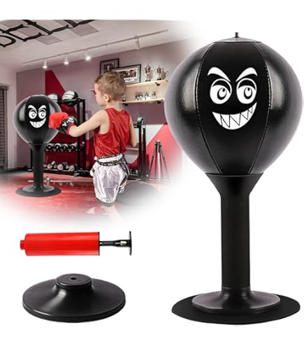 Outil Soulagement Stress Bureau Maison Table De Frappe Bureau Rage Bag Sac De Frappe Outil Punching Ballon Anti-stress Bureau Funpunch FUNPUNCH Rage Bag Punching Ball de Bureau Avec Système de Ventouse - Idéal Pour Soulager le Stress, Améliorer la Concentration et les Réflexes. Conception Durable en Cuir Pour un Entraînement Efficace Design pratique : ce sac de frappe de bureau dispose d'une ventouse dont la puissance d'aspiration peut atteindre 70 kg, ce qui vous permet de le fixer... Contenu de la livraison : 1 barre, 1 poire de boxe, 1 pompe à air avec valve à ballon, 1 valve de pression à ventouse, 1 ventouse en caoutchouc., Remarque : 1., En raison de la mesure manuelle, la taille et le poids peuvent présenter une certaine erreur., 2., La couleur de l'article peut varier légèrement de celle de la photo en fonction des paramètres d'affichage et de luminosité de votre ordinateur. En frappant ce ballon de boxe de bureau, vous pouvez facilement libérer les mauvaises émotions et réduire la fatigue causée par le stress de la vie ou les longues heures de travail. Avec ce kit, vous pouvez soulager le stress rapidement et facilement. Table de punching ball : punching ball de bureau, mini sac de frappe avec ventouse et pompe à air, sac de frappe Funpunch Rage Bag, set de punching ball, sac de frappe de table, mini poire de boxe de bureau pour patron, collègues, amis Spécification : Hauteur totale : 37 cm Couleur de la poire de frappe : rouge Matériau de la poire de boxe : diamètre 17,5 cm x hauteur : 23 cm Matériau du pied : caoutchouc Dimensions : diamètre 188 cm Poids : 1 kg. Matériau de qualité supérieure : cette table de frappe en cuir synthétique est très dense et durable. Gonflable : la table de punching ball peut être gonflée rapidement et facilement avec la pompe à main fournie, de sorte que vous pouvez régler la résistance individuellement selon vos préférences. Les sacs de sable anti-stress sont l'outil parfait pour les adultes et les enfants pour se calmer facilement. En frappant ce ballon de boxe de bureau, vous pouvez facilement libérer les mauvaises émotions et réduire la fatigue causée par le stress de la vie ou les...