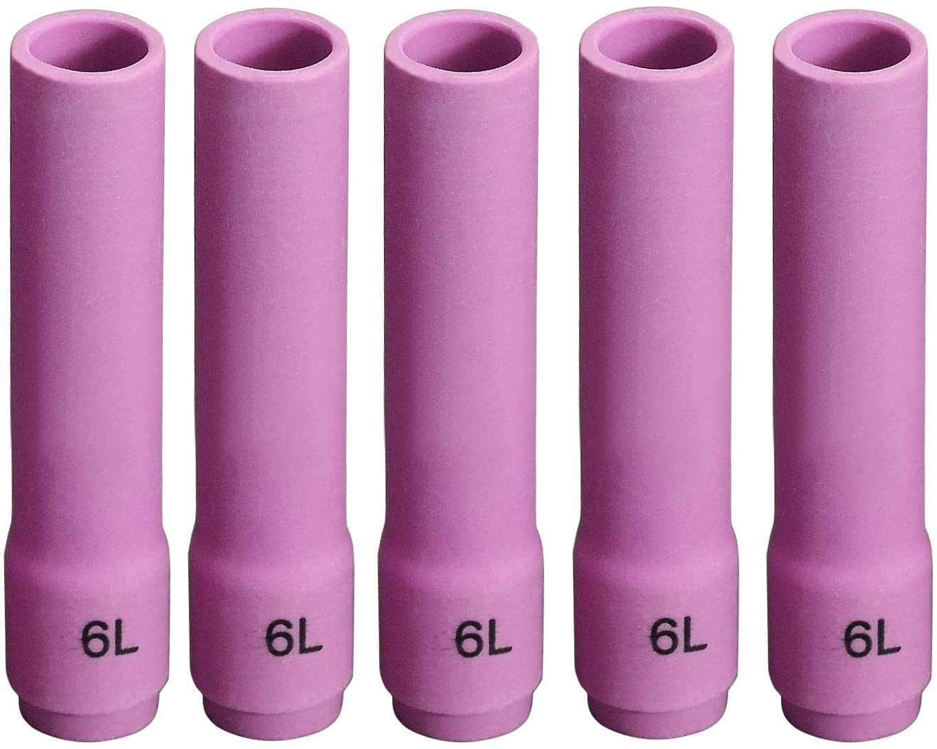 RIVERWELD Boquilla de alúmina TIG con copas de cerámica largas 796F70 Buse Céramique Tig Tige Inox RIVERWELD TIG Buses En Alumine Coupes En Cu00e9ramique Longue 796F70 3L# 5.0mm, 796F71 4L# 6.5mm, 796F72 5L# 8.0mm, 796F73 6L# 9.5mm Pour SR WP 9 20 25 Torche De Soudage Buses Pour WP-9 WP-20 Ces gobelets en céramique à buse en alumine s'adaptent à toutes les torches refroidies par air série 9 et les torches refroidies à l'eau de la série 20, y compris les torches Lincoln PTA-9 et PTA-20, Miller Diamondback DB9 et DB 20, ainsi que les torches Weldcraft WP-9 et WP-20 Tig Alumina Builles de céramique Coupes Long 796F75 (# 4xl 6., 5mm) Orifice Fit DB SR WP 9 20 25 TIG Soudage Torche Buses à gaz en alumine Coupes Collets Kit d'accessoires pour torche de... REF NO: 796F75 (# 4xl 6., 5mm) Orifice Travaillez avec le corps 13N Collet dans une torche régulière