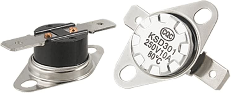 Fielect Lot de 2 therostats KSD301 230 °C/446 °F Noraleent feré N.C... Fonction de réinitialisation automatique : équipé d'un contact normalement ouvert (NO) qui se réinitialise automatiquement, ce commutateur garantit que votre appareil revient à un fonctionnement normal après refroidissement, empêchant les réinitialisations manuelles et le maintien de performances constantes. [Utilisation polyvalente] Convient pour une utilisation dans les micro-ondes, les machines à café, les cuisinières rapides, les chauffages et les sèche-linges, ce thermostat est polyvalent et peut être utilisé sur une gamme d'appareils ménagers pour garantir qu'ils fonctionnent en toute sécurité. Interrupteur Thermique 50°C Uxcell KSD301 Lot De 5 Thermostats 130 °C 10 A Normale Fermé N.C Réglez La Température à Disque Pour Micro-ondes, Four, Cafetière, Matériau En Céramique Thermostat Réarmement Automatique Compact et pratique : avec des dimensions de 20,6 x 31,8 mm et des bornes à connexion rapide de 6,3 mm, ce thermostat est compact mais fonctionnel, ce qui le rend facile à intégrer dans vos appareils sans prendre trop de place. 5 X KSD301 250V 10A Interrupteur de controle de la temperature du... Action sensible à la température : température d'actionnement 50 °C, réinitialise la température de 15 °C en dessous de la température d'action, en veillant à ce qu'elle se déclenche au bon moment pour protéger vos appareils contre la surchauffe, améliorant leur sécurité et leur longévité. Lot de 5 interrupteurs KSD301, thermostats thermiques 250 V 10 A NO70