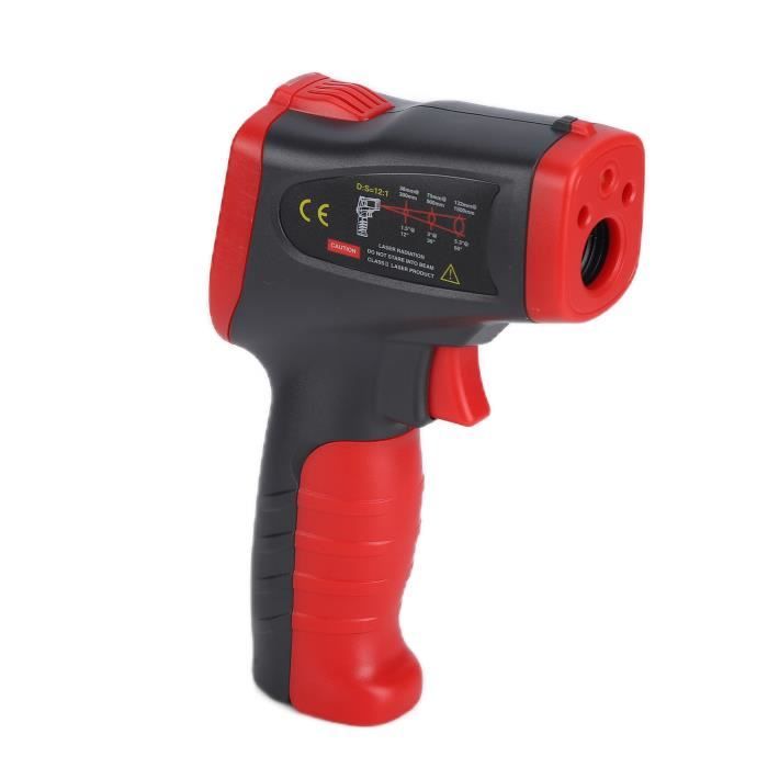 Mesure Température Surface Pistolet Thermomètre Infrarouge (-50 °C à 420 °C), Pistolet De Température Laser Sans Contact Thermomètre Laser 12:1 Utilisez-le lorsque vous cuisinez et cuisez au barbecue, effectuez des travaux d'entretien auto, effectuez des réparations domiciliaires, surveillez les systèmes électrique, mécanique, CVC, poulets de chair haut de gamme, fours à pizza, fours et systèmes automobiles Thermomètre Infrarouge Four à Pizza | Thermomètres & Sondes Multifonctionnel : le thermomètre infrarouge dispose d'un écran LCD rétroéclairé facile à lire, d'un interrupteur ℃/℉, de maintien des données, d'une alarme de température haute/basse, d'une fonction d'étalonnage, d'une mesure de la température ambiante, d'un indicateur de batterie faible, d'une mise hors tension automatique Thermomètre numérique infrarouge pour bébé LCD Type de pistolet sans... Ne tirez pas de laser dans vos yeux, c'est très dangereux) Mesure sûre : le rapport de distance au point du pistolet à température de 12:1, vous aide à obtenir les meilleures mesures précises à des distances allant jusqu'à 36 cm sans toucher d'objets chauds. (*Veuillez noter : le point rouge du laser n'est pas là où la température est prise, la surface réelle mesurée est d'environ 2 cm en dessous du point laser) Facile à utiliser : il suffit de viser et d'appuyer sur la gâchette, le thermomètre infrarouge balaye en continu la température et maintient la dernière lecture affichée lorsque vous relâchez le déclencheur, vous permettant d'obtenir une lecture de température de surface avec une erreur de seulement ± 1,5 % en 0,5 secondes, avec une plage de mesure de -50 °C à 600 °C