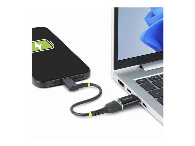 USB-C to USB-A Adapter - M/F - USB 3.0 (5Gbps L'adaptateur USB-C vers USB-A de vous permet de recharger votre appareil compatible USB-C, mais aussi de synchroniser vos photos, votre musique et vos données sur votre ordinateur portable existant à des débits de 480 Mbit/s Câble Usb C USB 3.0 Dongle Type-C To A Adapter LN108614 - USB31CAADG UK Adaptateur USB 3.0 5Gbps Description du produit Vous avez acheté un nouvel appareil ne possédant qu'un port USB Type-C ou Thunderbolt 3, comme un ordinateur portable ou une tablette ? Vous devez y brancher des périphériques USB 3., 0 ou 2., 0 moins récents ? Cet adaptateur USB-C vers USB-A permet de brancher des périphériques USB 3., 0 et 2., 0 à de nouveaux appareils USB-C. com de 2 ans pour une fiabilité à toute épreuve., Remarque : USB 3., 0 est synonyme de USB 3., 1 Gen 1 (5 Gb/s). StarTech.co Adaptateur USB 3.0 (5Gbps) USB-C vers USB-A... Bénéficiez d'une connexion optimale avec un adaptateur certifié USB-IF Cet adaptateur a été soumis à des tests de conformité très rigoureux et porte la certification USB-IF (USB Implementers Forum) qui garantit le respect de l'ensemble des spécifications USB 3., 0., Ces spécifications concernent notamment toutes les normes environnementales, électriques et mécaniques qui garantissent la haute qualité et la fiabilité de cette connexion pour chacun de vos appareils USB-C. Clause de non-garantie Le produit provient de l'Espace économique européen (EEE). APPLICATIONS : Fonctionne avec les ordinateurs portables TB3/4 ou USB-C tels que MacBook Air/Pro, Surface Book, X1 Carbon, ou les tablettes et smartphones tels que iPad Pro, iPhone 15 [Plus/Pro/Max] et plus, Samsung Galaxy S8 et plus, Pixel 5 Contenu du coffret Adaptateur USB-C vers USB-A USB 3., 1