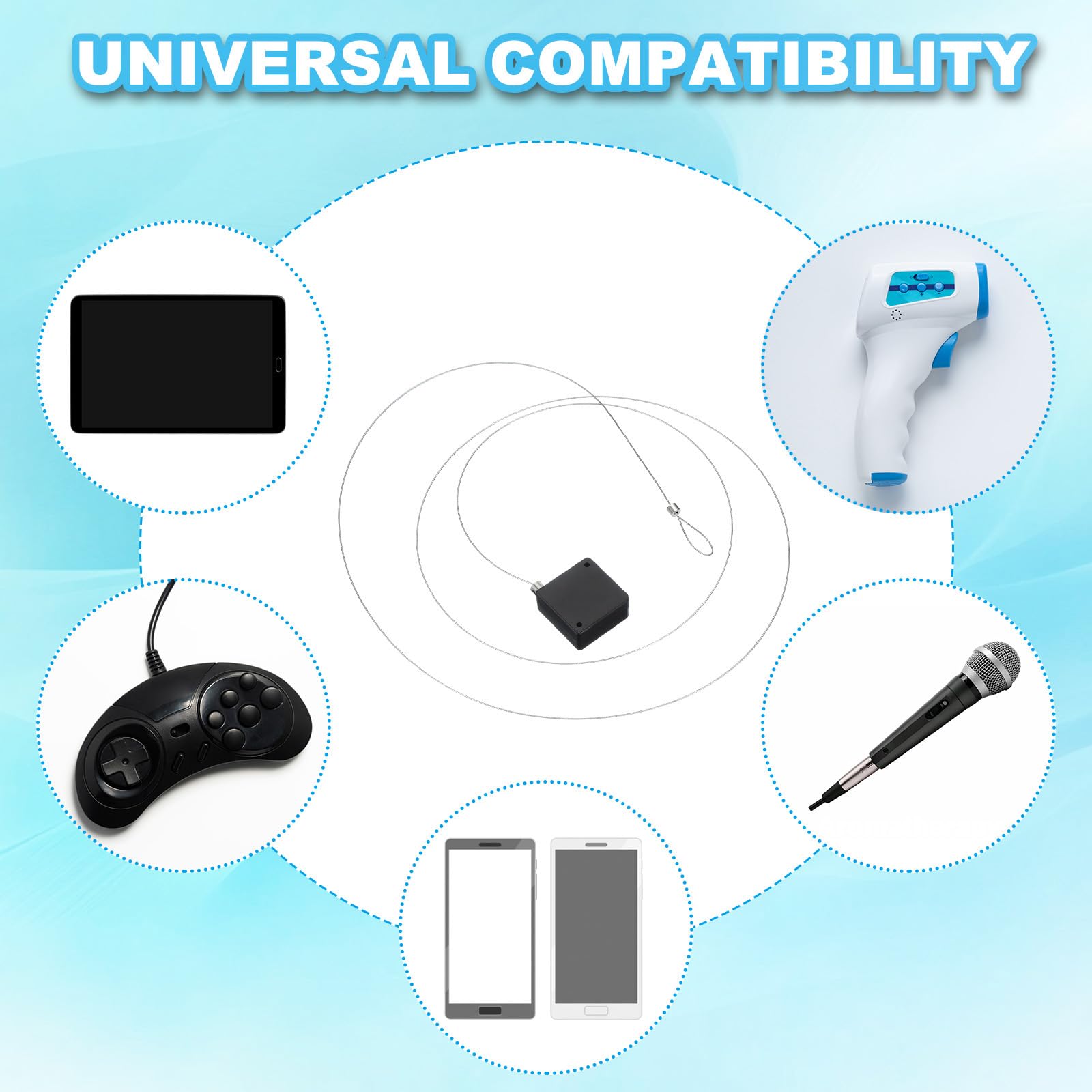 Mettez fin à l'inconvénient des télécommandes perdues et volées et épargnez-vous des remplacements coûteux de télécommandes. Protection Télécommande Vol Câble Acier 600g Traction 4 Câbles Antivol Rétractables Avec Adhésif - Verrou à Clé, Résistance 600g - Pour TV, DVD, Télécommandes - Noir Verrou Pour TV DVD Antivol Télécommande Fini les désagréments des télécommandes perdues et volées et évitez les remplacements coûteux de vos télécommandes. Un cordon rétractable pour télécommande avec des patchs adhésifs est parfait pour adhérer à une variété de produits courbés. Il peut éviter la perte et la recherche d'articles couramment utilisés, ce qui permet de gagner du temps Remarque : Gardez une surface propre et sèche avant et après le collage. Instruction : Fixez la plaque sur la surface dure de l'unité à l'aide d'un support adhésif solide. Câble d'acier télescopique avec patch adhésif, La serrure à câble Matériel Convient aux produits cylindriques, en bande ou perforés, comme les sceaux... Il est durable et fiable, et les coussinets supplémentaires sont faciles à remplacer. Que ce soit à la maison, au bureau ou ailleurs, les télécommandes TV perdues appartiennent au passé. Laissez reposer pendant 3 heures après le collage pour éviter l'étirement et assurer une forte adhérence HUNJHYC Verrou de sécurité à télécommande – Câble antivol réglable pour télécommande – Corde robuste et pratique anti-perte pour TV, Ohp, famille, amis, collègues Caractéristiques : Couleur : Noir Matériau : ABS, acier inoxydable 304 Dimensions : 50,5 x 33 x 16 mm (L x l x H) Câble en acier extensible jusqu'à 1 m Contenu : 1 attache rétractable pour télécommande, 1 clé et ruban adhésif Avantage : La forme de la laisse de télécommande TV du câble antivol offre un maintien sûr pour les produits incurvés sans problèmes de compatibilité. Application : Un cordon de télécommande rétractable avec des patchs adhésifs est parfait pour adhérer à une variété de produits courbés.