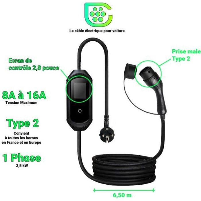 Une lumière rouge clignotante indique une erreur Câble Charge EV Type 2 Schuko Câble Charge Voiture Électrique De Type 2 Schuko Ev Chargeur Compatible Tesla VW ID Nous vous répondons dans les 8 heures Il ne craint pas d'être exposé au soleil brûlant en été. Garantie et service client : Ce produit bénéficie d'une garantie de 12 mois. Câble de recharge résistant à la chaleur, sûr et stable : Notre câble de recharge est fabriqué à partir de matériaux de haute qualité et bénéficie d'une conception optimisée. Chargeur mobile Type 2, câble de charge portable 3,5 kW avec prise EU Schuko, étanche IP67, 7,5 Lorsqu'il est connecté au véhicule électrique, la LED jaune s'allime constamment. La fiche de charge Type 2 possède un indice de protection IP67, et la boîte de contrôle IP65., La puce intelligente offre 8 mécanismes de protection, incluant la protection contre les surintensités, la surchauffe, les fuites de courant, les surtensions et les sous-tensions, pour garantir une utilisation sûre et fiable Lorsque la LED bleue est allumée en permanence, la batterie est entièrement chargée. Idéal pour une utilisation fréquente et à long terme En fonctionnement normal, il peut atteindre des températures allant jusqu'à 70°C tout en garantissant des performances sûres et une charge efficace. Le chargeur « EVJUICION EV Chargeur Type 2, 16A Schuko » se présente comme une solution idéale pour garantir une recharge efficace et sécurisée. Conçu pour s'adapter à vos besoins quotidiens, il vous permet de profiter pleinement de votre voiture électrique sans tracas JATRHG Station de Recharge Rapide 7KW pour Voiture Électrique - Chargeur EV... Lorsque le chargeur Type 2 est connecté à la source d'alimentation, la LED verte s'allume en permanence. Pendant le processus de charge, la LED bleue clignote. La température de fonctionnement est de -30°C à 50°C. Avec 16A/3,68kW (230V), il recharge efficacement, réduit la résistance et prolonge la durée de vie – pour une charge plus rapide et stable avec une efficacité énergétique maximale.