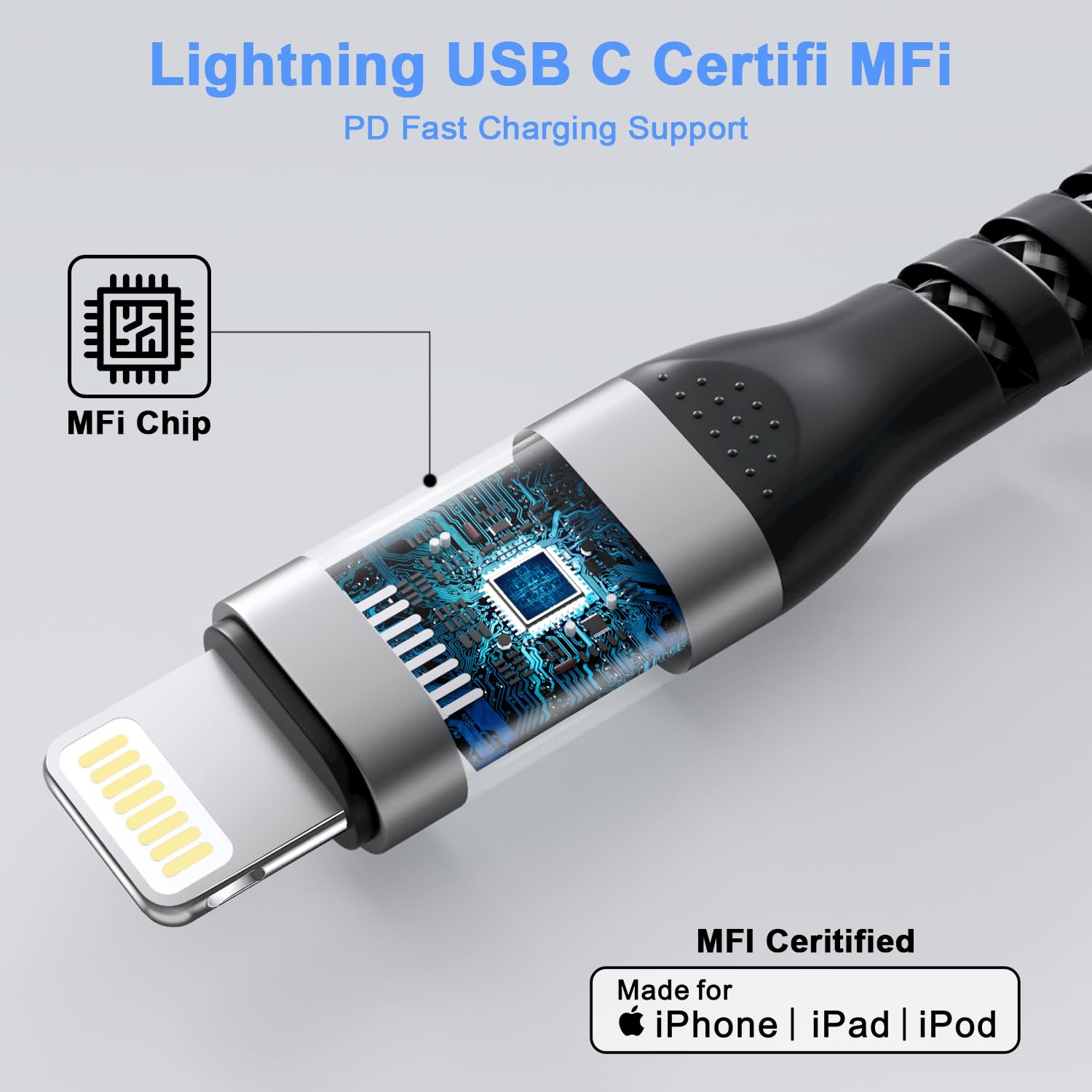 Câbles IPhone Câble Lightning Nylon Charge Rapide Câble Chargeur IPhone MFi [2x 0.3M] - Nylon Tressé - Charge Rapide - Compatible IPhone 11/12/13/SE - Noir Charge Rapide Iphone Charge Rapide Nylon Tressé Chargeur Rapide pour Apple Watch[Certifié Apple MFi] Câble de Charge Rapide magnétique vers USB... Cable Iphone Charge Rapide Cable IPhone (1M), Chargeur IPhone Avec Matériaux : nylon tressé et alliage d'aluminium. Cable iPhone vous offre une charge rapide à 3A et assure un transfert de données à une vitesse éclair de 480 Mbps, 3 fois que le câble normal. Améliorez l... Si vous avez des questions, n'hésitez pas à nous contacter. Chargement et transfert de données rapides : Câblage en cuivre épais de qualité supérieure à l'intérieur de nos câbles pour garantir une charge rapide et une date de transfert efficace pour tous les appareils compatibles. Appareils compatibles : Compatible avec iPhone 13 12 X, iPhone 8 Plus, iPhone 8, iPhone 7 Plus, iPhone 7, iPhone SE, iPhone 6S Plus, iPhone 6S, iPhone 6 Plus, iPhone 6, iPhone 5S, iPhone 5C, iPhone 5., iPad Pro (10,5), iPad Pro (12,9) 2e génération, iPad Pro (12,9) 1ère génération, iPad Pro (9,7), iPad Air 2, iPad Air iPad (4e génération), iPad mini 4, iPad mini 3, iPad mini 2, iPad mini, iPod touch (6e génération) et iPod touch (5e génération)., Couleur : noir., Quantité : lot de 5., Longueur : 0,6 x 0,9 m + 0,6 x 1,8 m + 3 m. Son angle droit protège la prise et soulage la tension sur votre câble La gaine en nylon tressé sans enchevêtrement rend le câble de téléphone plus robuste, il est flexible, résistant à la traction, plus doux, plus léger et plus durable que les câbles de téléphone d'origine.