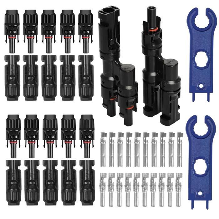 Mc4 Connecteur Solaire Câble Solaire Mc4 Câble Solaire 4mm² 5m Avec Connecteurs MC4 Connecteur Y Panneau Solaire PN1 MC4 Y Connecteur Plug-in Set 4-6 mm câble solaire mama KZQ Y Type Connecteurs Solar, 2 pcs (1 à 3 Branches) Professionnel... Résistant au feu, faible résistance de contact. Étanche à l'eau et empêche l'accumulation de poussière. 【Y Connecteur Panneau solaire】Lorsque vous utilisez un seul câble solaire, vous êtes confronté à de nombreux câbles en désordre. Plage de températures de fonctionnement : -40℃~+90℃. La couleur du câble vous aide à le distinguer,La conception en forme de Y vous aide à combiner 2 fils en un., (1Y2). 【Application large】Le connecteur solaire en Y est compatible avec tous les types de câbles solaires. L'adoption du plastique photovoltaïque double couche plus fil central en cuivre, anti-oxydation, anti-UV, résistance aux hautes températures. Application large]Le connecteur solaire en Y est compatible avec tous les types de câbles solaires. L'adoption du plastique photovoltaïque double couche plus fil central en cuivre, anti-oxydation, anti-UV, résistance aux hautes températures. Y-Connecteur panneau solaire (1 à 3), Ip67, F/M/M/M et...