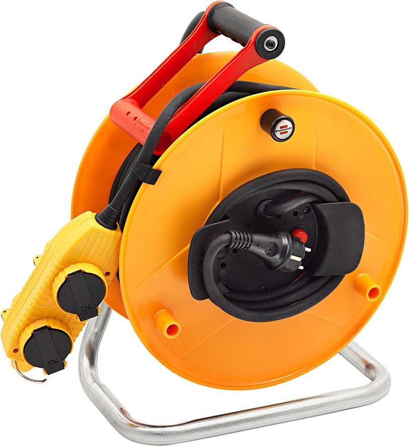 Brennenstuhl 9191400110 Enrouleur de câble professionnel SteelCore SC4100 IP44 40m H07RN-F 3G1,5 Enrouleur de câbles standard de couleur jaune avec disjoncteur thermique et une longueur de câbles de 40m. - Diamètre tambour 320 mm. - 4 prises 2P T 16A... Enrouleur Câble électrique 40m Enrouleur De Câble Standard Pro 40m - BRENNENSTUHL Enrouleur Prises 16A Avec Poignée L’enrouleur de câble Standard FD Pro de 40m de brennenstuhl dispose d’une fiche différentielle 30mA qui permet la protection de la vie humaine par une coupure de l'alimentation si un courant de fuite est détecté. Poignée de transport innovante câblepilot pour un guidage parfait du câble, bascule des 2 côtés permettant ainsi un transport et une accroche facile Brennenstuhl Enrouleur de câble Baby Pro 10 (IP44), Fabrication... Il est également équipé de la technologie Cablepilot et d'un voyant LED lumineux qui permet de s'assurer que l'enrouleur est alimenté. 4 prises de courant avec clapet à fermeture automatique, voyant de présence de tension LED et disjoncteur thermique Contenu du colis : 1x Enrouleur électrique Standard FD Pro 40m H07RN-F 3G2,5 avec protection différentielle 30mA Puissance maxi : câble non déroulé 1000W - câble déroulé 3500W