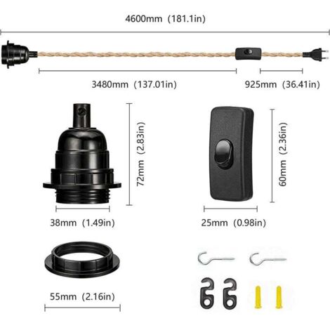 Créativité simple dans un style rétro. Cordon Lustre Suspendu Câble Suspension Luminaire Corde Et Noir - Fil Electrique En Tissu 2,5M Cordon Lumière Suspendu Vissez le lustre porte-lampe E27 dans la douille, connectez l'alimentation électrique et appuyez sur l'interrupteur pour l'utiliser. Dicuno Douille E27 Avec Fil, Support De Lampe Suspendue E27 Avec Bouton... Matériaux sûrs et respectueux de l'environnement : la couche extérieure du Douille de Lampe E27 est constituée d'un matériau de corde de chanvre naturel et la couche intérieure est constituée de fil de cuivre de haute pureté. Il a une large gamme d'applications et convient à la plupart des ampoules vendues sur le marché. Douille De Lampe E27 Vintage Avec Câble Et Interrupteur,Suspendue... Le support de lampe est en résine phénolique, qui présente une forte isolation et résistance à la chaleur. La corde de chanvre a une odeur naturelle. Facile à installer : avec une ficelle réglable, vous pouvez ajuster la longueur du composant selon vos besoins, vous pouvez installer la suspension sans outils, installer l'ampoule sur le Douille de Lampe E27, la brancher et l'utiliser. DOUILLE DE LAMPE PLAFOND LUSTRE CORDE E27 EDISON SUSPENDU NŒUD VINTAGE 1 MT Vous pouvez placer le lustre en corde de chanvre sur le balcon et l'odeur disparaîtra après un certain temps. Fabrication DIY : Avec ce Suspendue Lustre Corde, vous pouvez fabriquer différentes lampes créatives, vous pouvez facilement créer vos propres lampes uniques en accrochant les trois douilles avec des cordes.