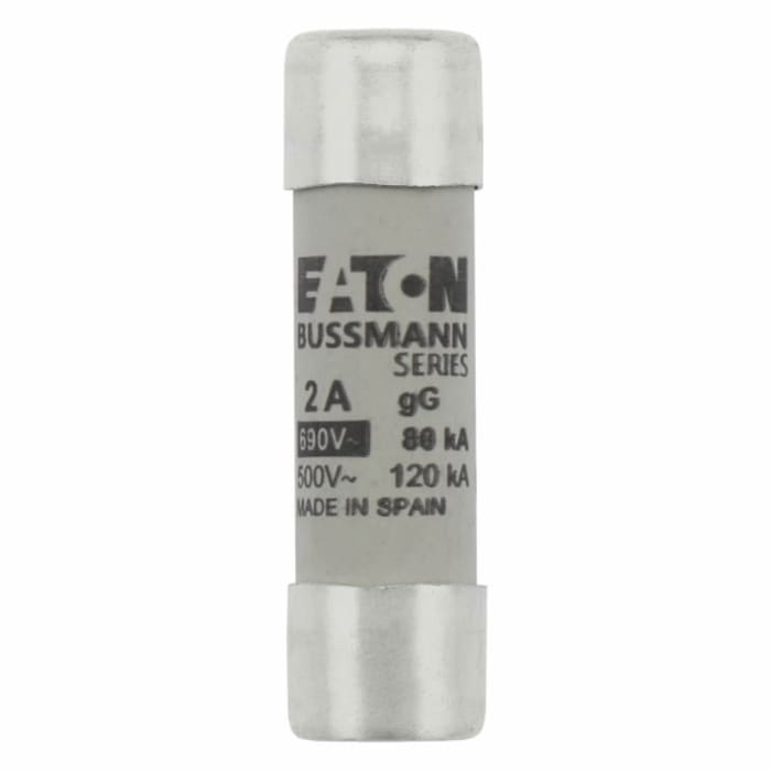 Fusible cilindrico de 14x51mm Clase GG 500V| C14G2 – ELVATRON Bussmann par Eaton abc-1/10-r buss Small dimension Fuse , Cooper bussman , Fabriqué en USA Fusible Industriel Retardé 2 Ampères C14G2 EATON ELECTRIC Fuse-link, LV, 10 A, AC 690 V, 14 X 5 Fusible Cylindrique GG Eaton Bussmann series low voltage 14 x 51 mm cylindrical/ferrule fuse, rated at 690 Volts AC, 2 Amps, 80 kA Breaking capacity, class gG/gL, without indicator... C14G2 | Fusible de cartucho cerámico Eaton, 690V ac, 2A, 14 x 51mm | RS