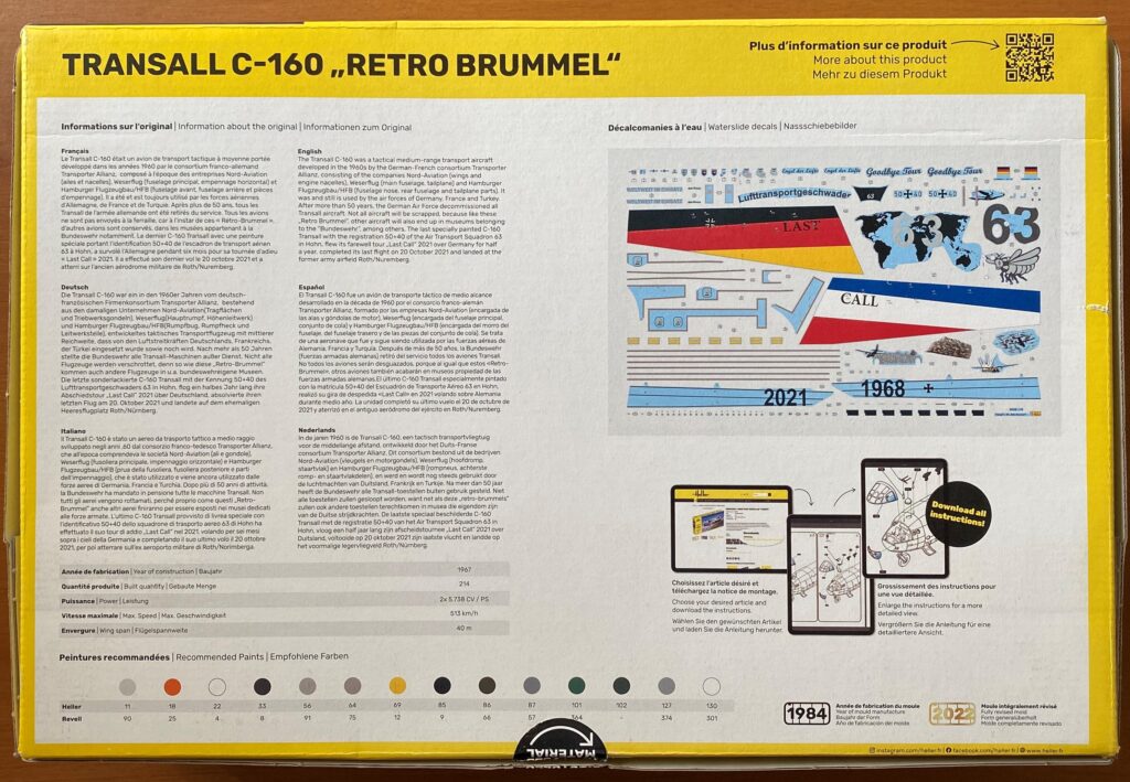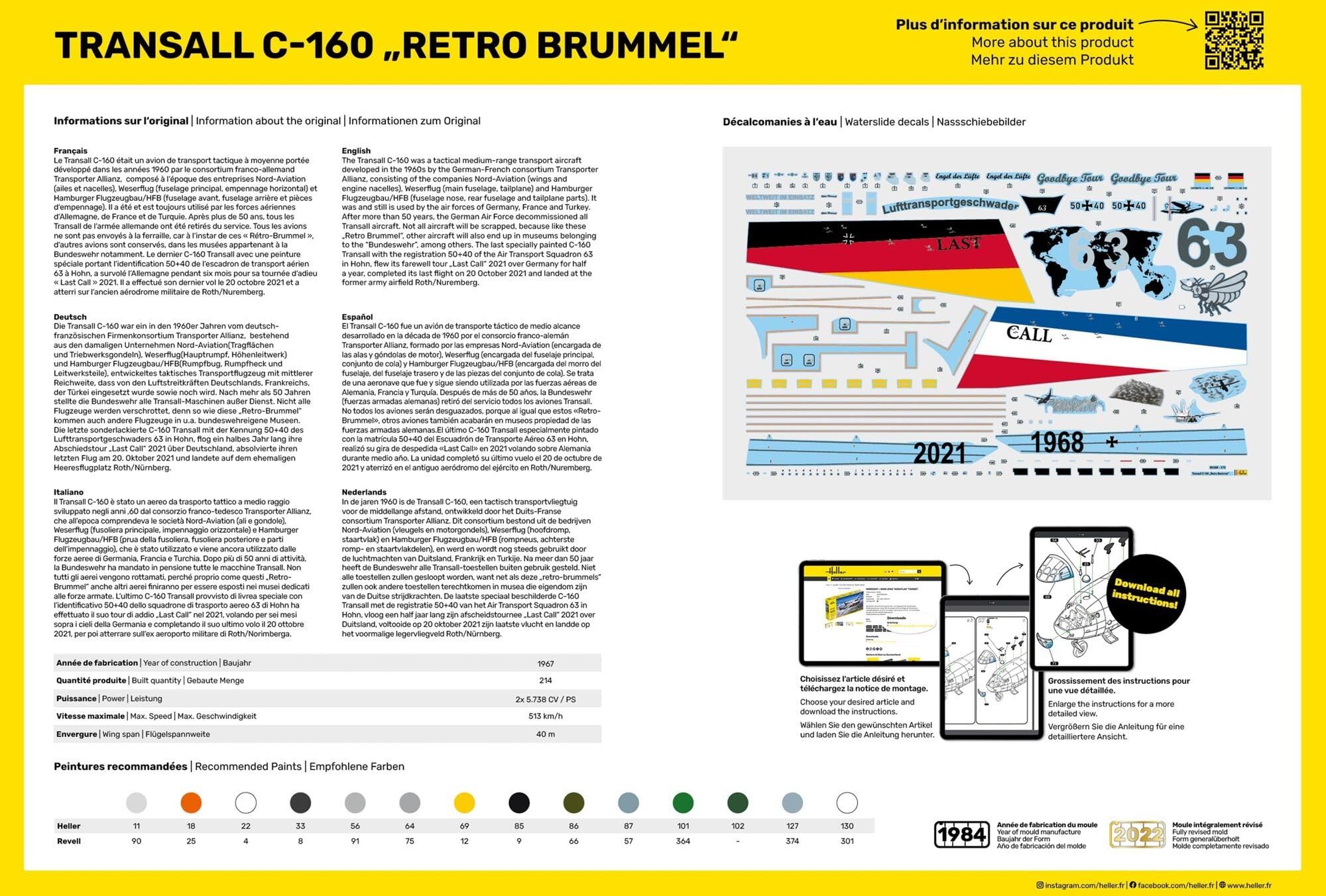 TRANSALL C-160 RETRO BRUMMEL HELLER 80358 1/72ème maquette char promo Root > Accueil > Avions > Avions militaires , Ref : Modélisme Avion Transport Militaire Maquette à Monter C160 Transall Gabriel - 1/72e Modèle Réduit Retro Brummel Fabriqué en France dans l'usine Heller de Trun, en Normandie. Informations sur la maquette à reproduire grâce au kit de modélisme Heller : Le Transall C-160 est un avion réalisé au cours des années 60 par une association franco-allemande. L'appareil moyen-courrieur a été utilisé pendant longtemps par la France, l'Allemande et la Turquie Maquette avion : Starter kit : Transall C-160 Retro Brummel - Heller...