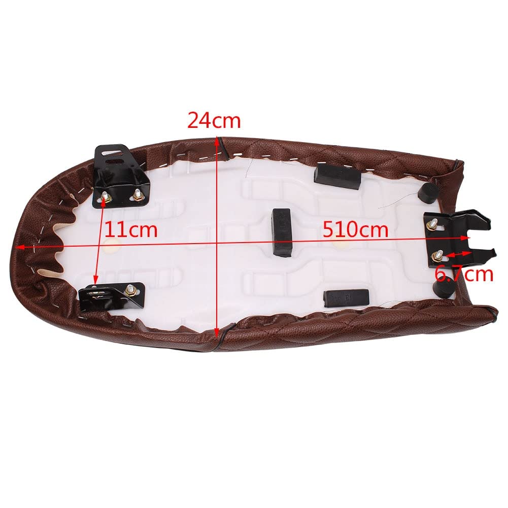 Selle de moto pour cafe racer | Antre du Motard Pour motos et autres motos avec cadre de vélo Brat. Supports Métalliques Inclus Selle Vintage Pour Moto Cafe Racer - Pour CB125 CB175 CB200 CB350 CB360 CB400 CB450 CB500 CB550 CB650 CB750 CG125 KZ400 KZ550 K750 Z666 50 W6 50 Siège Plat Vintage Il peut être nécessaire de changer quelques choses pour l'adapter à votre moto. Ces avis vous aideront à trouver le meilleur selle café racer vintage dans une large gamme, quel que soit votre budget, qu'il s'agisse de marques de qualité ou d'articles à prix abordable HAOLIP-Moto PU cuir Vintage Cafe Racer Seat selle plate pour Honda... La taille de l'article peut varier de +/- 1 à 3 cm. Lorsqu'ils sont visibles, ils peuvent être facilement lavés avec du savon et de l'eau chaude., Couleur : noir. État : siège haute performance, Cafe Racer, & vintage, Scrambler, selle style traceur. Ce siège est le siège modifié pour Cafe Racer. Contenu du colis cité ci-dessus seulement, aucun autre produit n'est inclus. Aboiled Dimensions : L 20,9 x l 9,8 x H 3,4 cm (L 53 cm x l 24,8 cm x H 8,6 cm) Comprend trois supports métalliques amovibles et six vis et écrous.