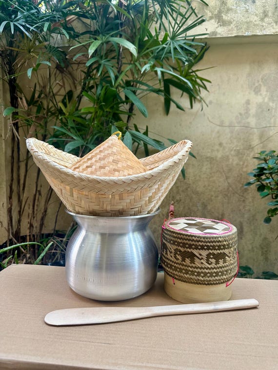 Essuyez-le simplement avec un chiffon humide ou lavez-le à l'eau tiède. Panier Service Riz Traditionnel Thaïlandais Fait Main CCcollections Panier à Riz Traditionnel Fait à La Main En Panier écologique Avec Couvercle Fabriqué à la main en Thaïlande : fabriqué avec soin et attention aux détails Fabriqué à partir de bambou durable : matériau écologique et résistant à la chaleur Option économique : parfaite pour les restaurants thaïlandais et pour un usage domestique Taille approximative : 8 cm de diamètre, peut contenir 1 tasse de riz gluant Le Riz Gluant à La Mangue Est Un Dessert Thaïlandais Composé De Riz Gluant De Mangue Et De Lait De Coco Isole Sur Fond Blanc Photo Il vous permet de présenter du riz gluant à vos clients de manière traditionnelle et authentique. Améliorez votre expérience culinaire et embrassez l'héritage culturel de la Thaïlande avec notre panier de riz gluant en bambou traditionnel fait à la main. Nettoyer le panier en bambou est un jeu d'enfant. Options de doublure polyvalentes : peut être utilisée avec une étamine, du papier sulfurisé ou du papier ciré Facile à nettoyer : il suffit d'essuyer ou de laver à l'eau tiède. Fabriqué à partir de bambou durable, ce panier de service écologique ajoute une touche de tradition et d'élégance à votre expérience culinaire. Traditionnellement utilisé dans le nord-est de la Thaïlande, à Chiang Mai et au Laos, ce panier en bambou est le récipient idéal pour servir du riz gluant Illustration De Boîte De Riz Gluant Et De Bambou Dessiné à La Main... Pour plus de commodité, vous pouvez recouvrir le panier d'un petit morceau de gaze, de papier sulfurisé ou de papier ciré pour empêcher le riz de coller au bambou. Fabriqué à la main en Thaïlande avec un savoir-faire méticuleux, ce panier en bambou met en valeur la beauté des matériaux naturels. Style thaïlandais authentique : servez du riz gluant de manière traditionnelle Traditionnellement utilisé dans le nord-est de la Thaïlande, à Chiang Mai et au Laos, ce panier en bambou est le récipient idéal pour servir du riz gluant.
