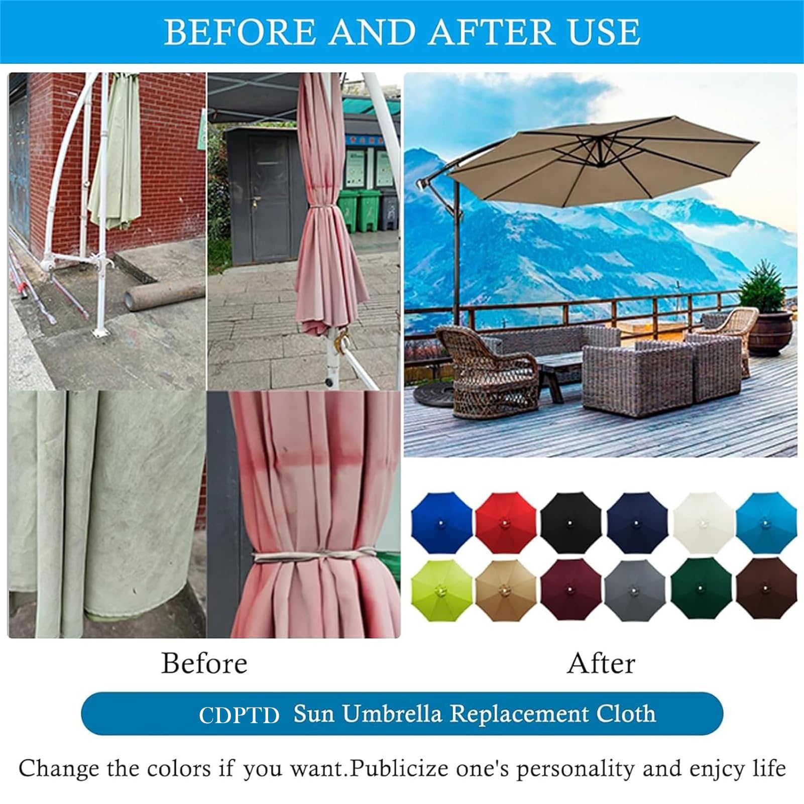 Parasol inclinable beige 300cm en alu protection UV 80 Durable et longue durée Fabriquée en polyester enduit de PU de haute qualité, plus épaisse * 210g, cette couverture de canopée est conçue pour durer. Housse Parasol Jardin CDPTD Housse De Rechange Pour Parasol, 6/8 Baleines 2M/3M Toile De Rechange Pour Parasol D'extérieur, Protection UV, Imperméable, Pour Extérieur, Terrasse, Plage, Piscine (2m / 6 Rippen,TYP-4 Parasols Portaux Que vous cherchiez à mettre à jour votre terrasse, votre terrasse ou votre jardin, cette couverture d'auvent est un excellent choix. Spécialement conçue pour les parasols 6 baleines de 2.7m (environ 8.9 pieds), en tissu polyester hyper résistant. Elle est complètement imperméable et protège... 2M-2.7M-3M Ronde Parasol Toile De Rechange, Tissu Auvent Remplacement... Très facile à installer et à enlever, il ne prend que quelques minutes. Elle est résistante à l'eau et offre une protection solaire UV50, garantissant qu'elle peut résister aux éléments et vous protéger des rayons nocifs du soleil. Wide application parasol de remplacement est parfait pour une utilisation autour de la maison et du jardin pour l'ombre personnelle. Nom du produit : Parapluie CouvertureQuantité : 1 Pc Le paquet comprend : 1x Housse de parapluie Disponible en différentes couleurs, cette couverture d'auvent peut compléter n'importe quel décor extérieur. Facile à utiliser : Le parasol de remplacement est amovible et lavable, facile à nettoyer après utilisation. 1., Protégé contre les UV et respirant.