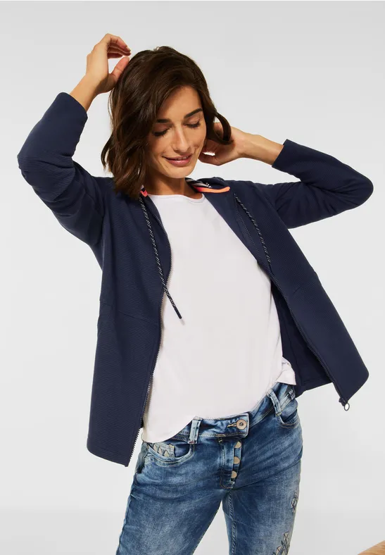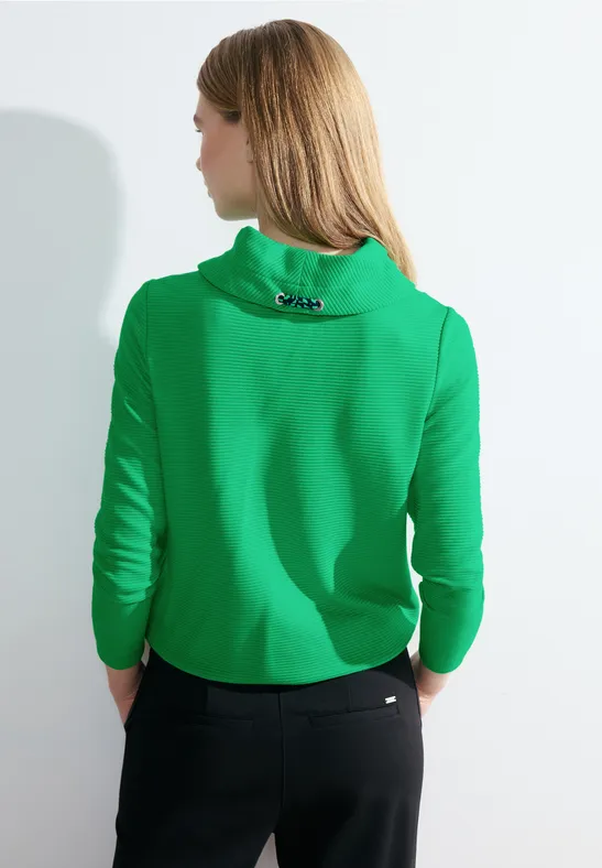 Haut Quotidien Féminin Cecil T-Shirt Ottoman Femme - Coupe Mixte Et Confortable En Coton Mélangé Vêtement Ottoman Mélangé CECIL Ottoman Shirt mit Kapuze für Damen in Blau | CECIL T-shirt Ottoman Femme CECIL Ottoman Shirtjacke Für Damen In Grün | CECIL Vêtement Basique Tendance Confort T-shirt ottoman · T-shirt à manches longues · Encolure ronde · Structure ottomane · mélange de viscose avec du stretch · Doux et confortable Les manches 3/4 et le confort optimal en font le compagnon idéal pour les tenues quotidiennes élégantes. Le t-shirt ottoman de Cencil pour femme se distingue par sa structure fine et son col montant tendance.